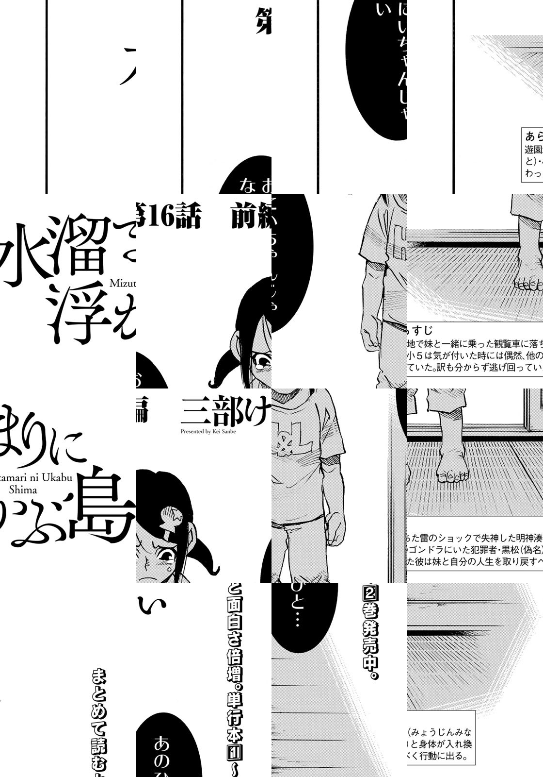 『僕だけがいない街』の三部けい、イブニング初登場!!主人公・明神湊に襲い掛かるカタストロフとは…!運命の交錯よりはじまる慟哭のヒューマンサスペンス、最注目新連載『水溜まりに浮かぶ島』堂々開幕!!