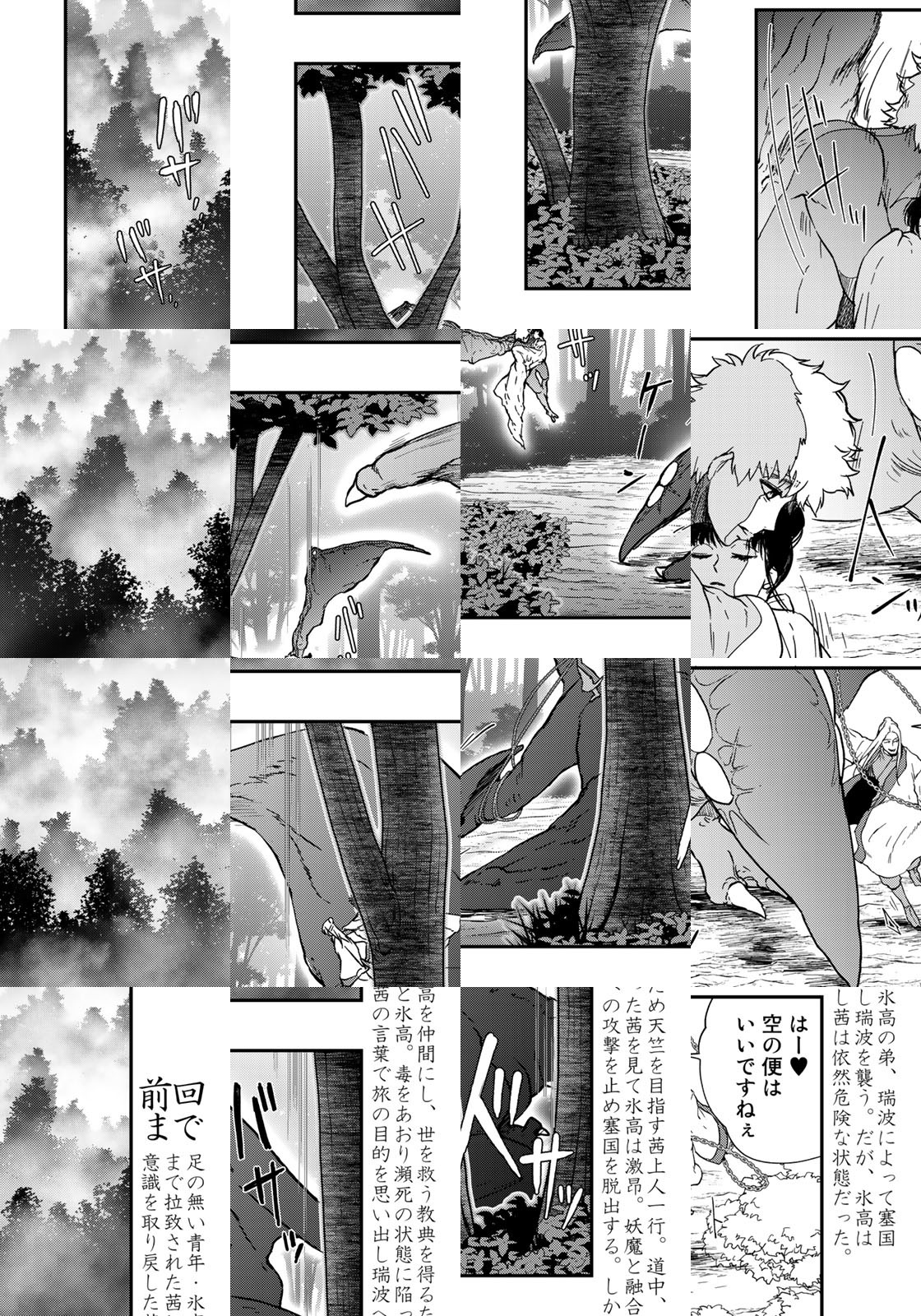 人類がその進化を止め滅亡へと向かう中、有り難き経典を手に入れるため天竺を目指す茜上人一行。立ち寄った邑で妖魔退治を頼まれた茜は、妖魔が現れるという廃鉱で一人の青年を見つける。足がなく、身の証明である「宝珠」を持たない彼は「塞の国」の王子・氷高の双子の片割れだった。茜はこの謎だらけの青年を天竺まで連れていくと言い出し――…。