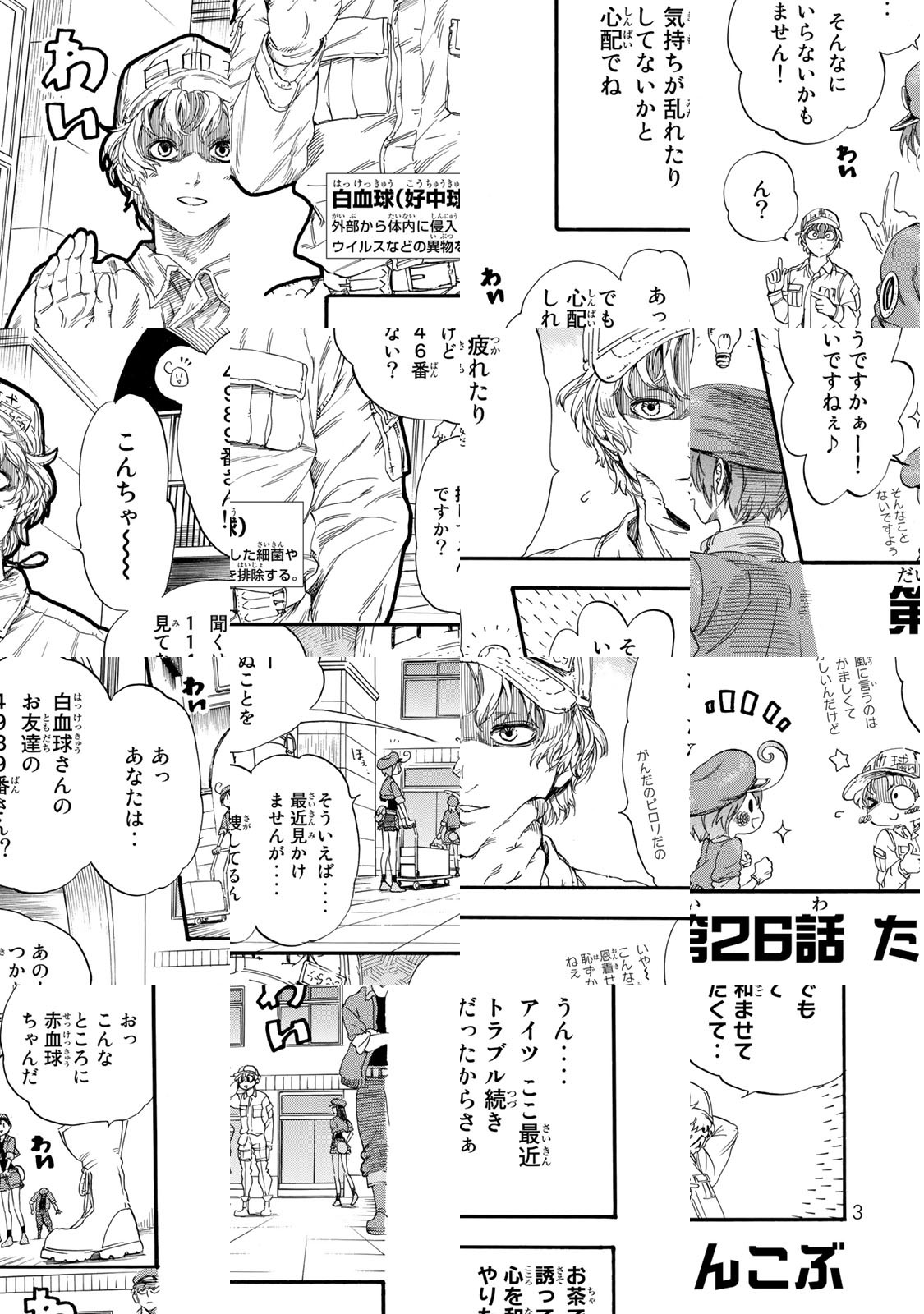 肺炎球菌! スギ花粉症! インフルエンザ! すり傷! 次々とこの世界(体)を襲う脅威。その時、体の中ではどんな攻防が繰り広げられているのか!? 白血球、赤血球、血小板、B細胞、T細胞...etc.彼らは働く、24時間365日休みなく! 大ヒット「細胞擬人化漫画」の原典はこちら!