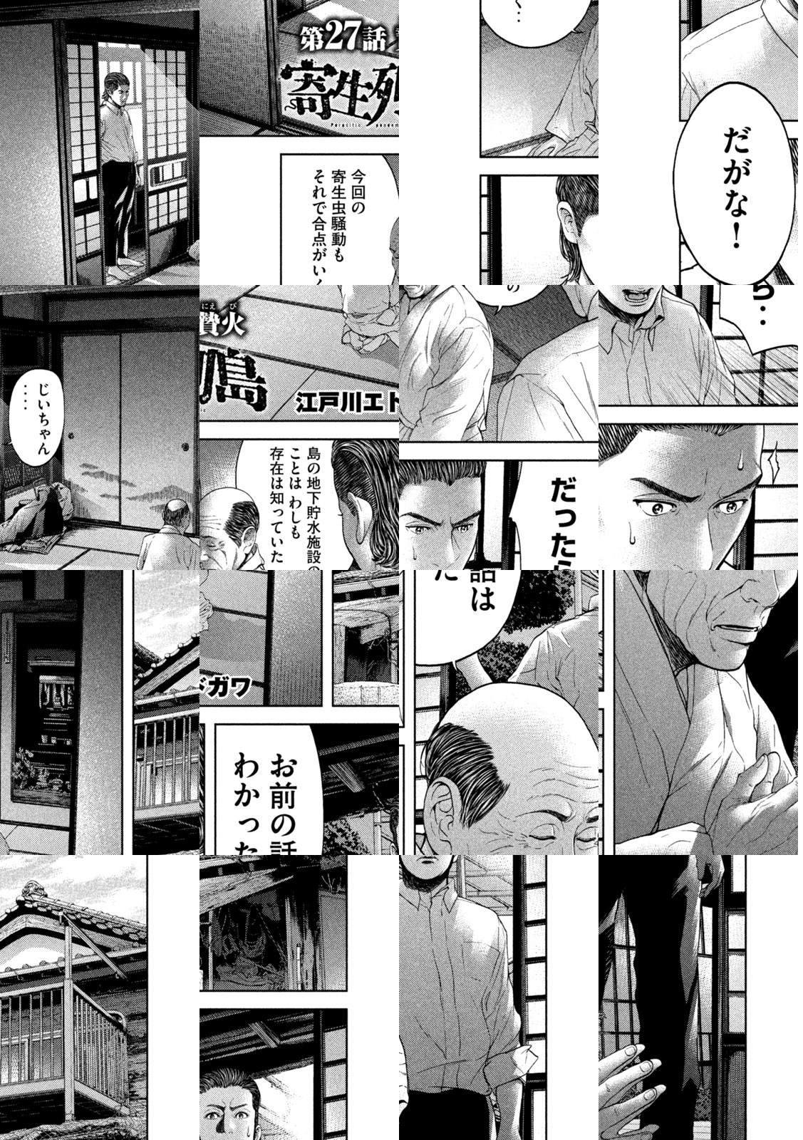 両親の離婚を機に、東京から地方の花山島に引っ越してきた女子高生・千堂千尋。彼女が移り住んだその島は、何かがおかしかった。露骨な部外者差別、突如行われる謎の儀式、そして島の真ん中に建てられた巨大な“給水塔”‥‥。島民同士が強固な繋がりを持つその島で、ある日、一人の漁師が自宅で滅多刺しにされる事件が起こる。島全体に猜疑心が湧き起こる中、見えてきた意外な犯人とは――。『生贄投票』の江戸川エドガワが描く、パラサイト・サイコスリラー!!