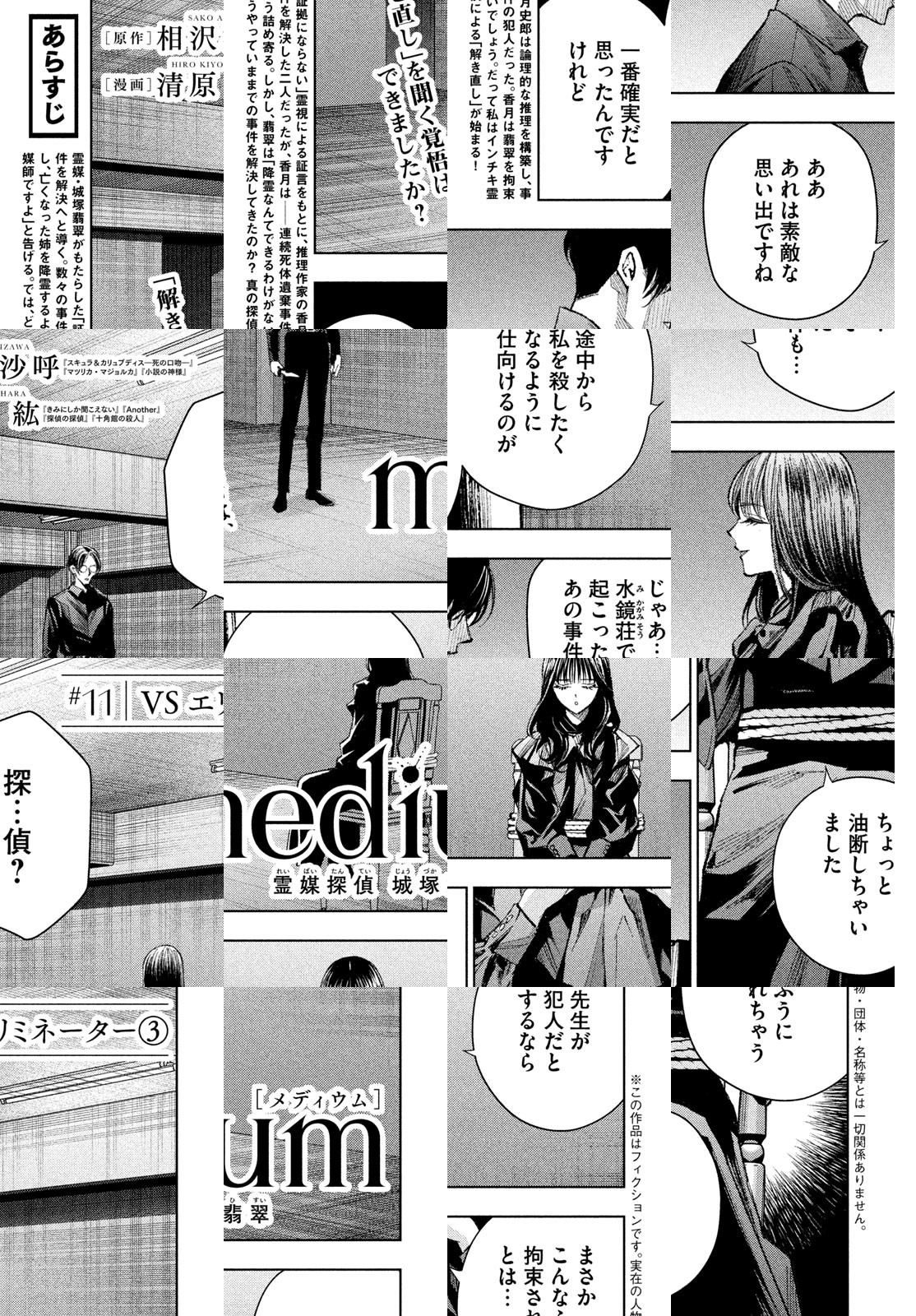 犯人はわかっている。でも、霊媒は証拠にならない。どうする!? 霊媒・城塚翡翠が心霊で犯人を当て、ミステリ作家・香月史郎が論理で「霊媒以外の証拠」を示す。数々の難事件に挑む二人だが、世間を震撼させている連続死体遺棄事件の犯人の魔手が、翡翠の元へと迫っていた!! ミステリランキングの5冠を達成した原作を漫画化! 麗しい探偵・城塚翡翠の推理劇が開幕する!