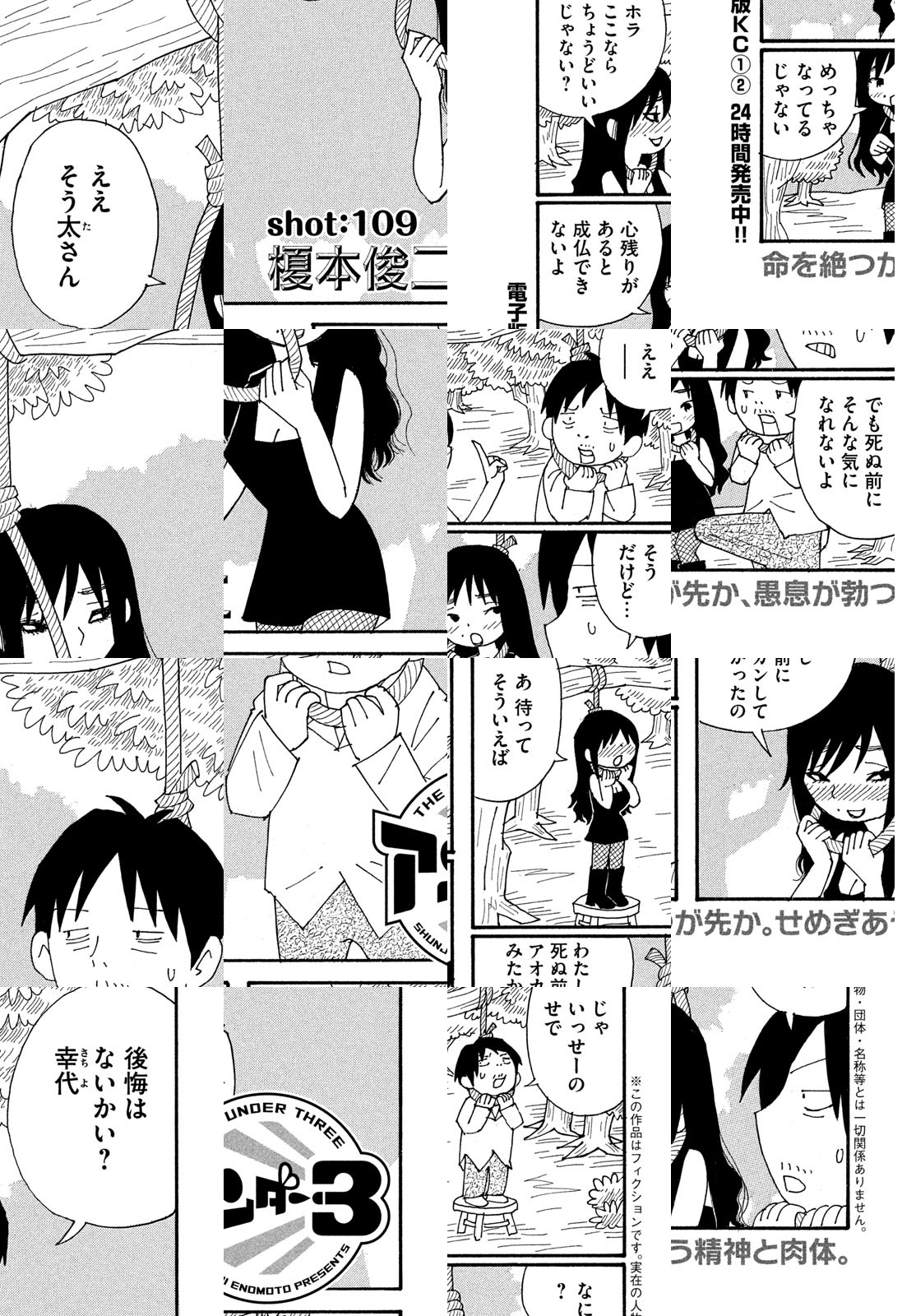ずのーん!ジャスジャス!ザーン!バローム! 孤高のショート職人・榎本俊二が放出する濃密ギャグ! ミツオ&そう太&マリヨ、品性ゼロ以下の3人組が縦横無尽にかけまわる大活劇! アディオス、アミーゴ。