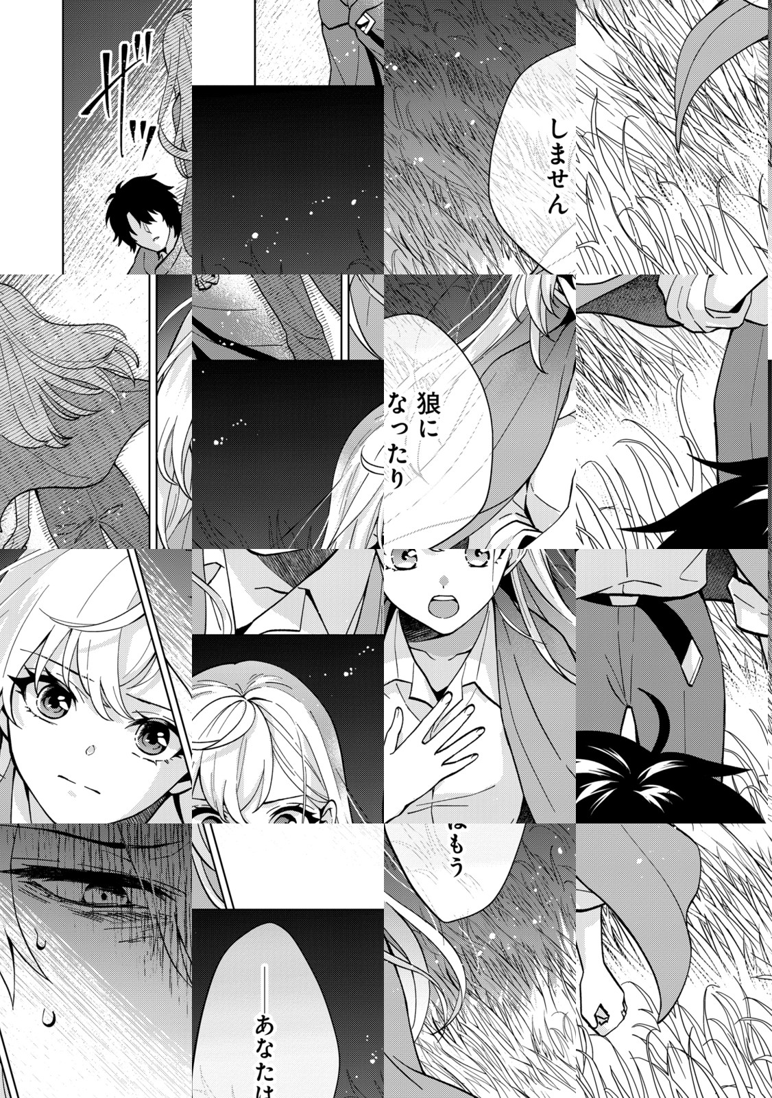 神殿の聖女・ルチルは、婚約者の魔術師・オズワルドに婚約破棄された上、王命によって神殿から追放されてしまう。行くあてのない彼女は魔の森へと足を踏み入れるが、そこで半分狼の姿をした元騎士団の青年・ルカに出会うことに。彼の半狼姿が呪いによるものと知ったルチルは、聖女の力によってルカを一時的に人間の姿に戻すことに成功する。それは、ハートフル愛されストーリーの始まり…!?