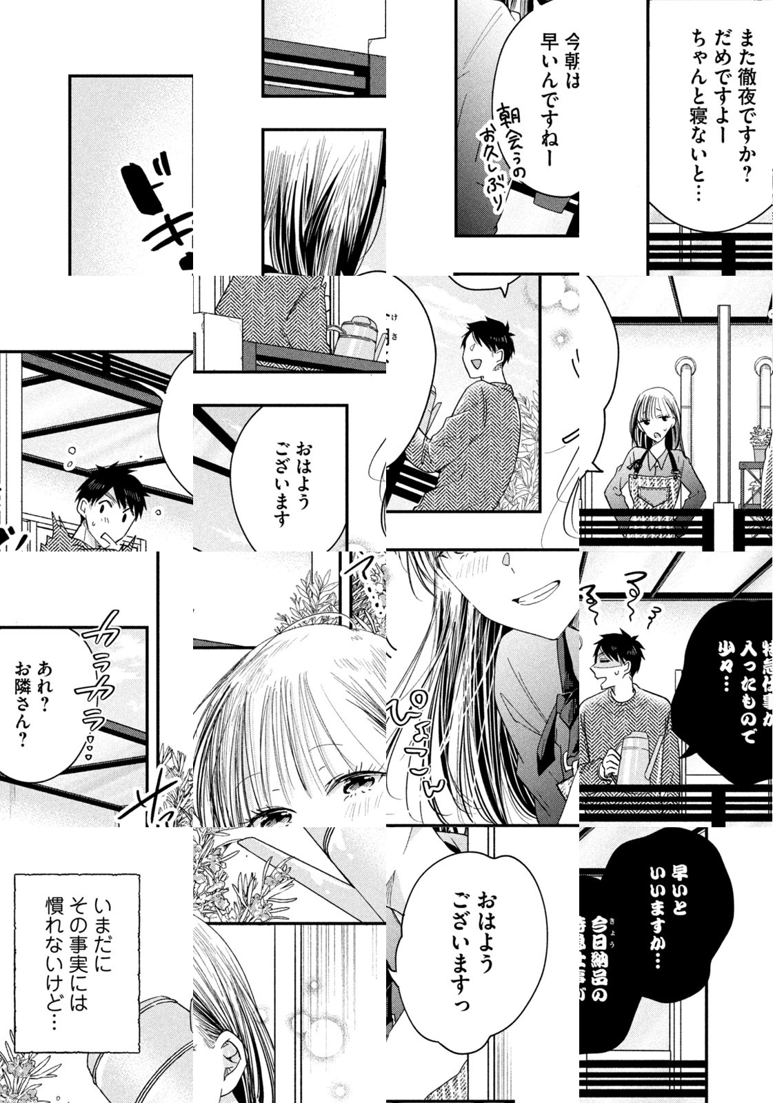 フリーのエディトリアルデザイナー・土岐田旬は、仕事に追われ部屋に籠りっぱなしの毎日。癒やしを求めてベランダガーデニングにハマるように。そんなある日、隣にちょっと変わった天然系の女性が引っ越してきた。ふとした出来事から、お互いの顔も知らぬままベランダの隔壁越しに話をするようになる二人。実は隣の女性は新進俳優・成海游なのだが……。ベランダとグリーンが繋ぐ隔壁越しの二人は?