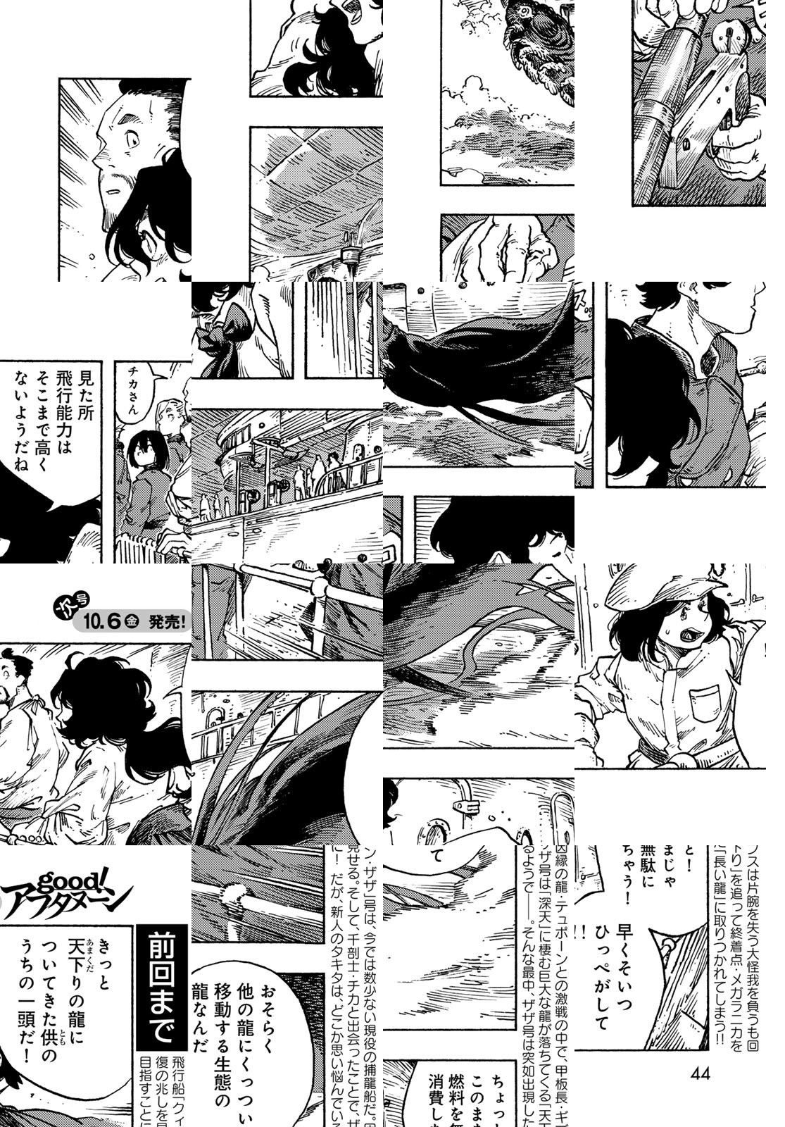 龍を追って、世界の空を往く捕龍船『クィン・ザザ号』。大物を捕まえれば一獲千金、獲りたての肉も食べ放題。でも、失敗したらもちろんお陀仏。空と龍に魅せられた乗組員たちの大冒険の旅&世界グルメ紀行!