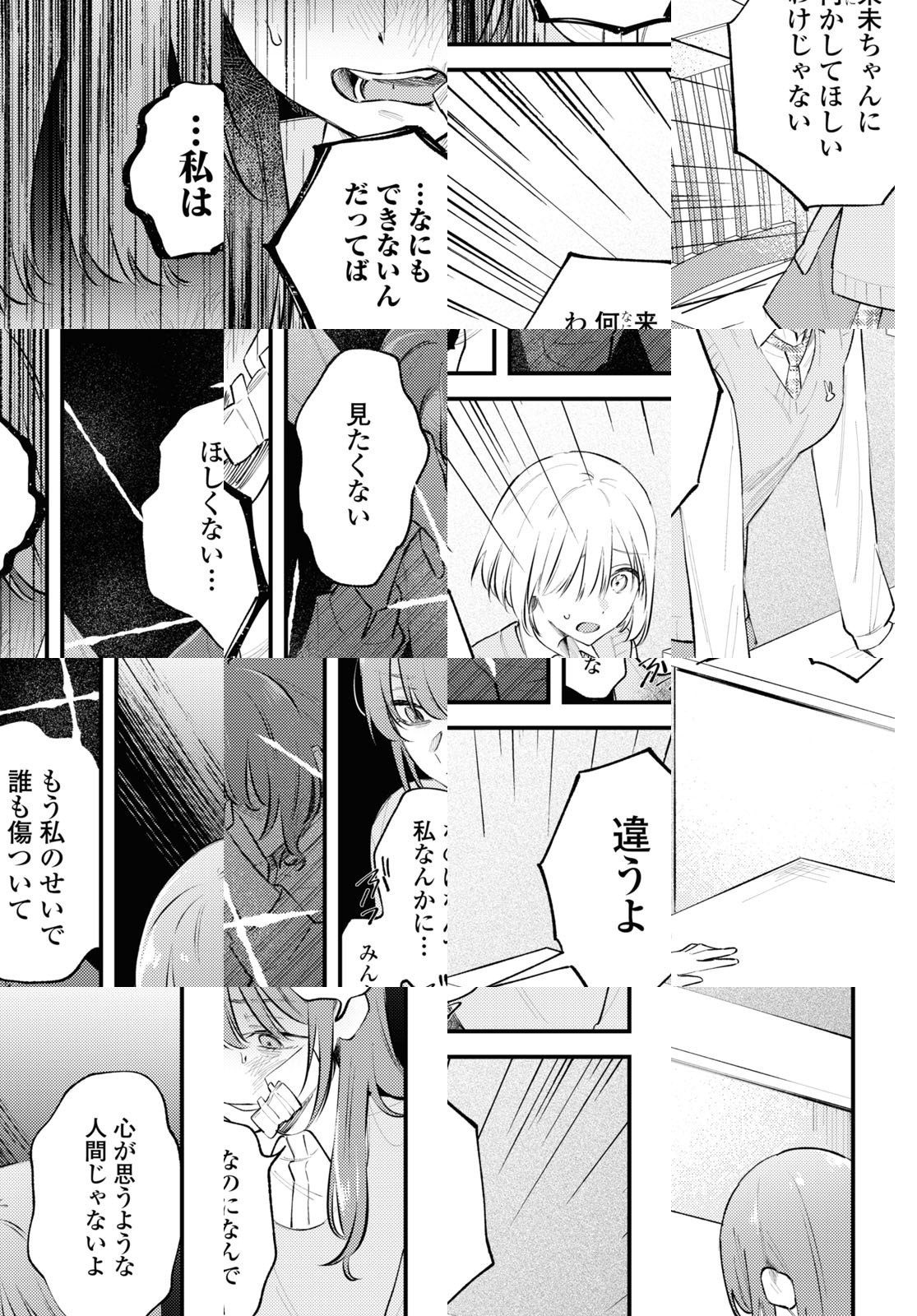 吉沢来未は、成績優秀で人当たりもいい生徒会長…というのは表向きの顔で、実際は母の束縛や教師の過度な期待に悩む日々を送っていた。ある時、不登校気味な同級生・直井を気にかけてほしいと担任教師に言われ渋々会いにいく吉沢だったが、直井は吉沢の本心を見透かしたように蔑むだけだった。ストレスも爆発寸前、吉沢は不意に万引きをしそうになる気持ちをギリギリで抑えるが、その一部始終を直井に録画されていて……逃げ場のない日常でもがく二人の、バイオレンス青春ストーリー。