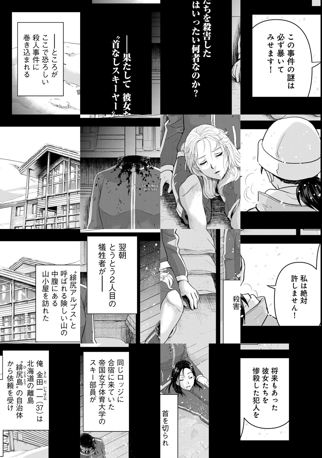 数々の難事件を解決してきた高校生名探偵・金田一一が37歳になったら? 原作・天樹征丸、漫画・さとうふみやの本家本元コンビが描く、まったく新しい金田一シリーズ開幕! はじめちゃんの職業は!? 美雪との関係は!? やはり殺人事件は起きるのか!? 気になることが盛りだくさん。是非ご一読を!