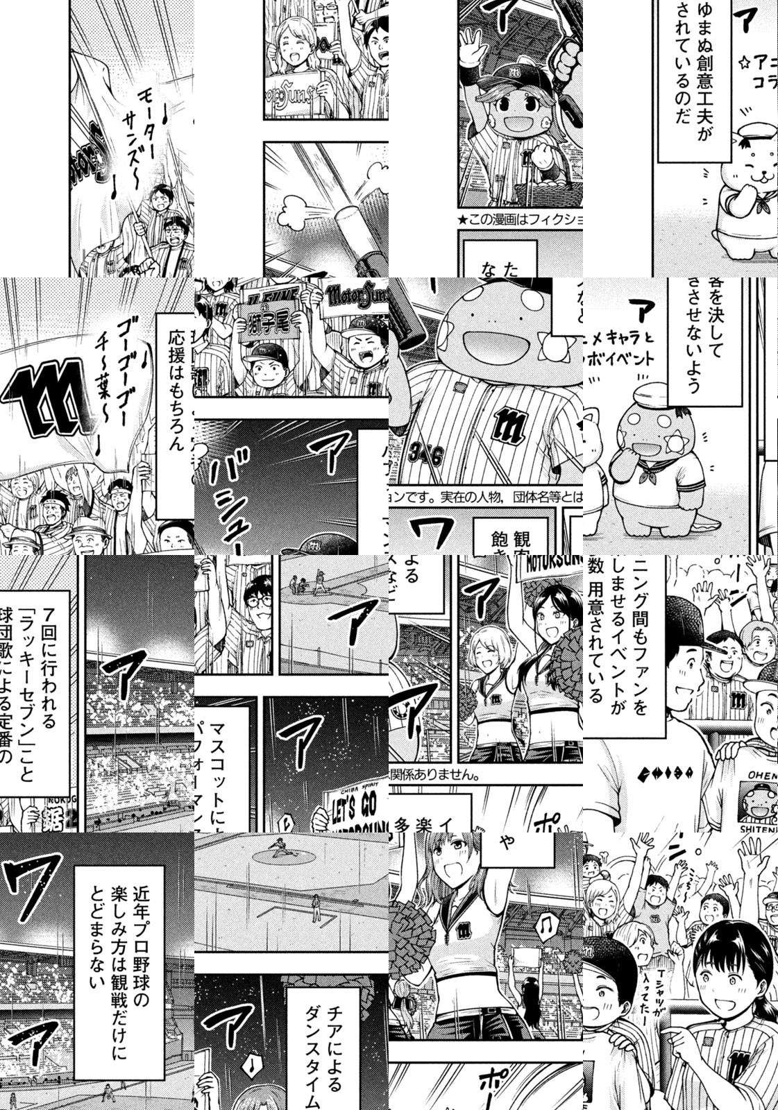 舞台は、とあるプロ野球のボールパーク(球場)!そこには選手や観客だけでなく、ビール売り子、ウグイス嬢、警備員、チアリーダー……たくさんの人が集い、働き、笑いあい、日々人間ドラマが生まれています。それはまるで、ひとつの「町」のよう。さあ、あなたもボールパークの「住人」になってみませんか⁉