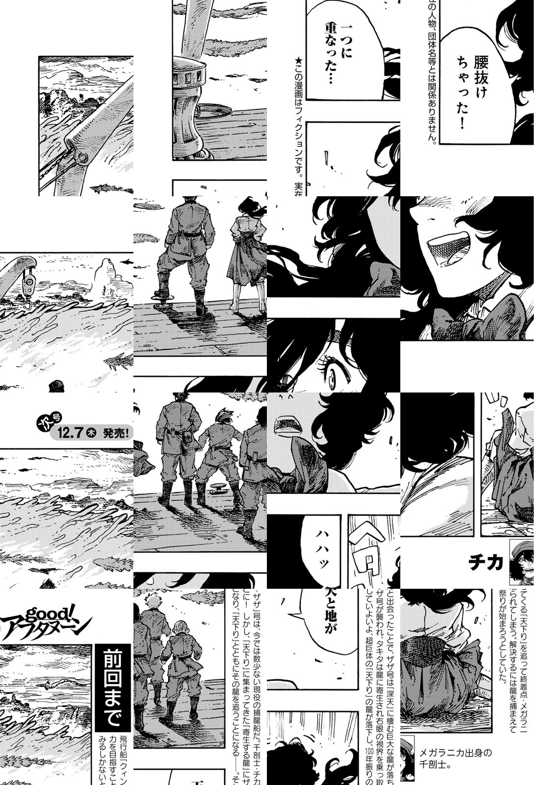 龍を追って、世界の空を往く捕龍船『クィン・ザザ号』。大物を捕まえれば一獲千金、獲りたての肉も食べ放題。でも、失敗したらもちろんお陀仏。空と龍に魅せられた乗組員たちの大冒険の旅&世界グルメ紀行!