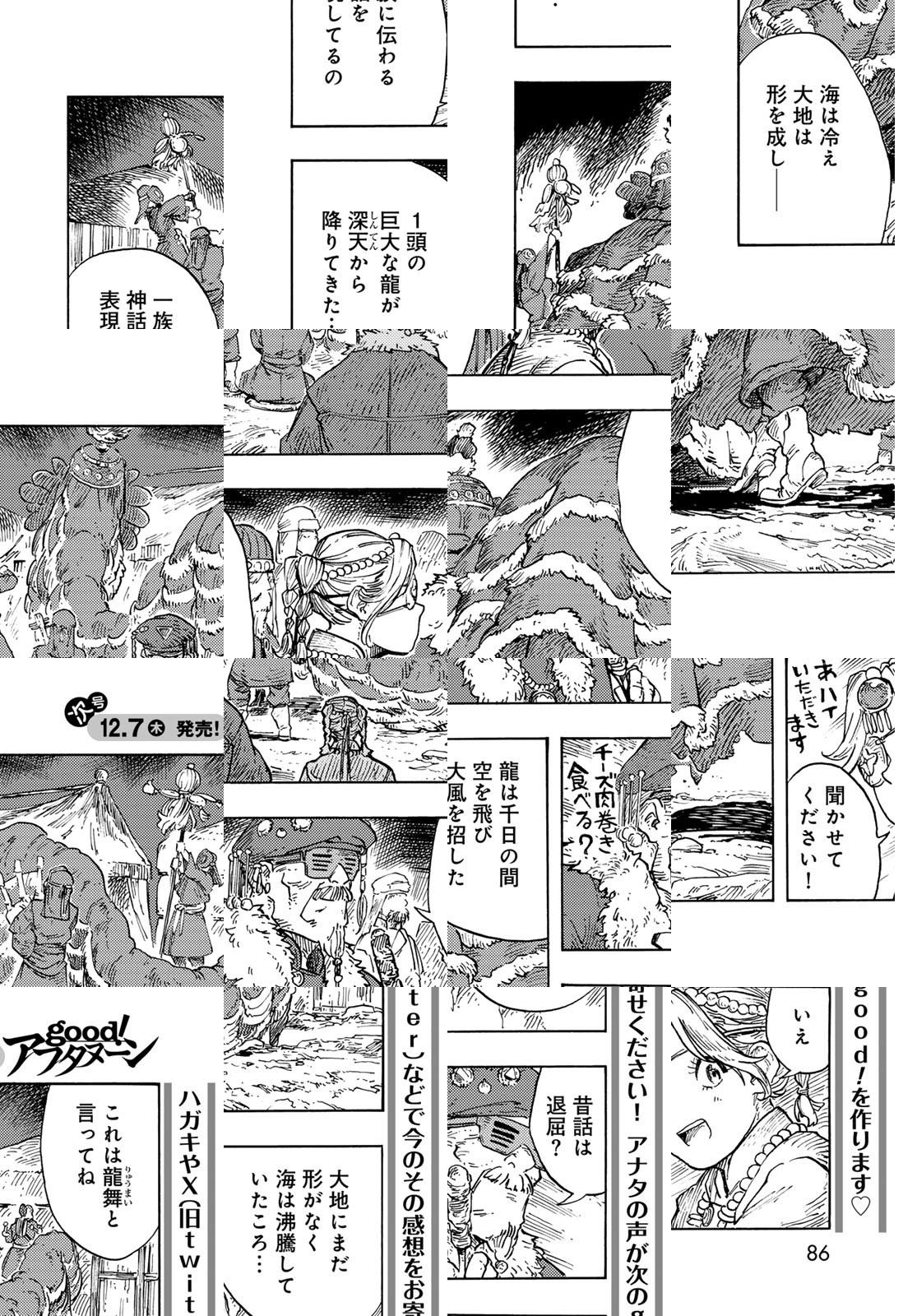龍を追って、世界の空を往く捕龍船『クィン・ザザ号』。大物を捕まえれば一獲千金、獲りたての肉も食べ放題。でも、失敗したらもちろんお陀仏。空と龍に魅せられた乗組員たちの大冒険の旅&世界グルメ紀行!