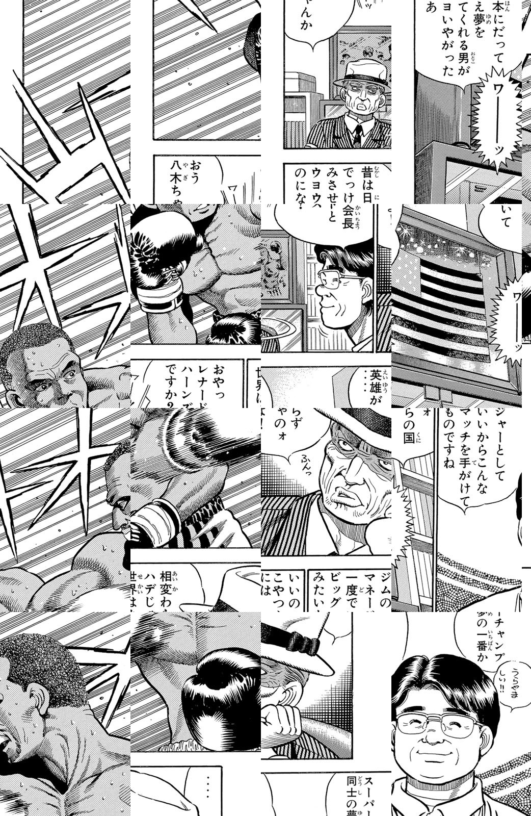 いじめられっ子だった幕之内一歩はひょんなことからボクシングに出会い、熱中していく。一歩は『強いってどういうことだろう?』という素朴な疑問を抱えながら、持ち前の頑張りで過酷な練習に耐え抜き、強くなっていく。数多の強敵との死闘を勝ち抜き、国内屈指のハードパンチを持つ日本王者となった一歩。その次なる目標は遥かなる世界王者への道! 限りなく熱く純粋な一歩のさらなる挑戦が始まった!!ひたむき少年、幕之内一歩登場!!“強い”ってどんなんだろう!?ボクも強くなりたい!!ドジでいじめられっ子の高校生幕之内一歩。ボクサー、鷹村との出会いは、一歩の拳にひそむダイナマイトパンチを呼び起こした!!プロボクサーへの夢を抱いた一歩は、鴨川ジムの入門テストに挑戦(チャレンジ)するが!?