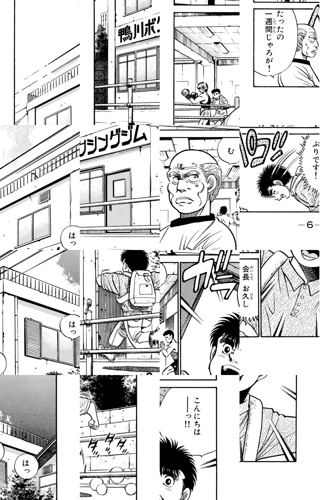 いじめられっ子だった幕之内一歩はひょんなことからボクシングに出会い、熱中していく。一歩は『強いってどういうことだろう?』という素朴な疑問を抱えながら、持ち前の頑張りで過酷な練習に耐え抜き、強くなっていく。数多の強敵との死闘を勝ち抜き、国内屈指のハードパンチを持つ日本王者となった一歩。その次なる目標は遥かなる世界王者への道! 限りなく熱く純粋な一歩のさらなる挑戦が始まった!!ひたむき少年、幕之内一歩登場!!“強い”ってどんなんだろう!?ボクも強くなりたい!!ドジでいじめられっ子の高校生幕之内一歩。ボクサー、鷹村との出会いは、一歩の拳にひそむダイナマイトパンチを呼び起こした!!プロボクサーへの夢を抱いた一歩は、鴨川ジムの入門テストに挑戦(チャレンジ)するが!?