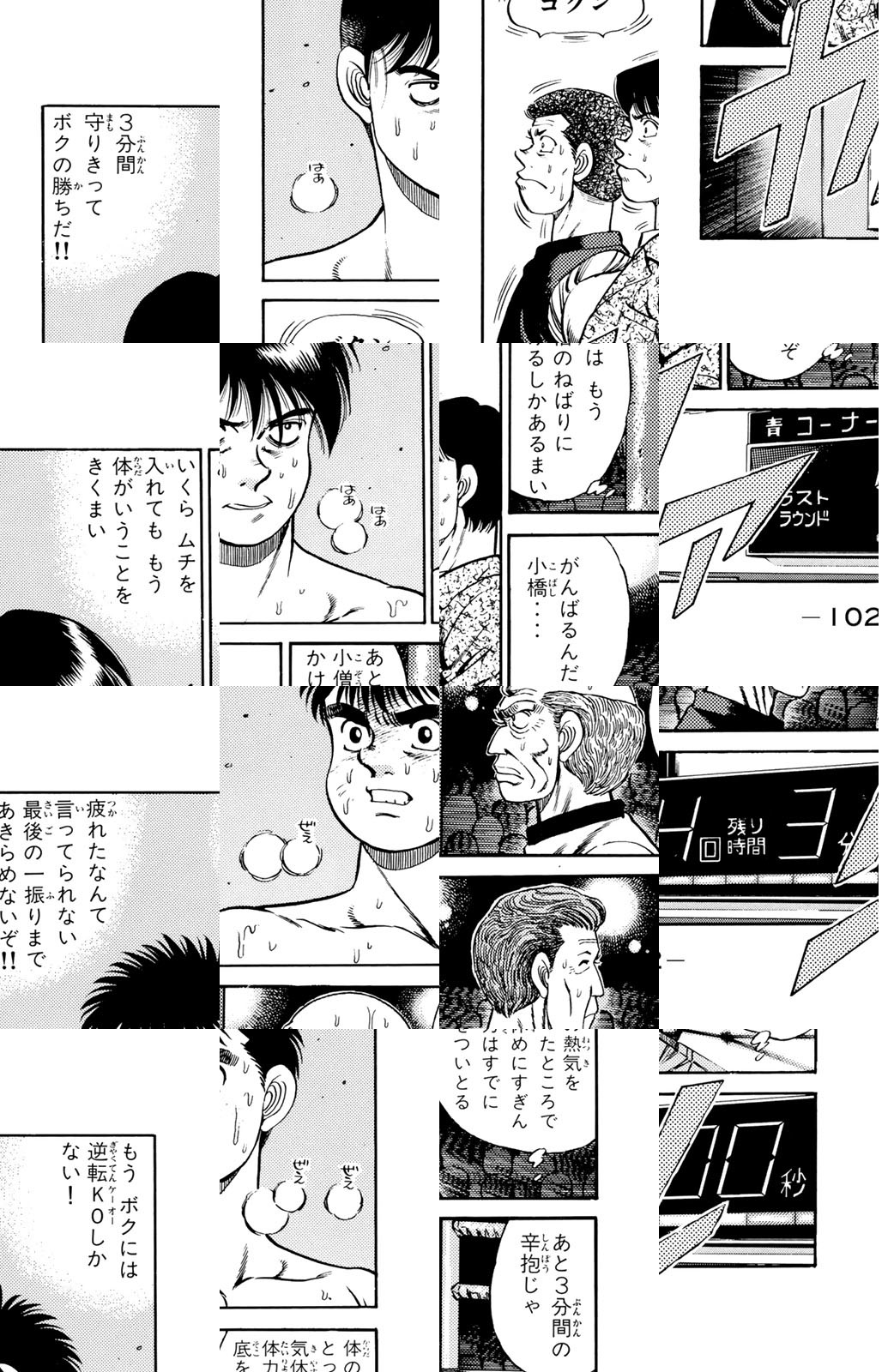 いじめられっ子だった幕之内一歩はひょんなことからボクシングに出会い、熱中していく。一歩は『強いってどういうことだろう?』という素朴な疑問を抱えながら、持ち前の頑張りで過酷な練習に耐え抜き、強くなっていく。数多の強敵との死闘を勝ち抜き、国内屈指のハードパンチを持つ日本王者となった一歩。その次なる目標は遥かなる世界王者への道! 限りなく熱く純粋な一歩のさらなる挑戦が始まった!!ひたむき少年、幕之内一歩登場!!“強い”ってどんなんだろう!?ボクも強くなりたい!!ドジでいじめられっ子の高校生幕之内一歩。ボクサー、鷹村との出会いは、一歩の拳にひそむダイナマイトパンチを呼び起こした!!プロボクサーへの夢を抱いた一歩は、鴨川ジムの入門テストに挑戦(チャレンジ)するが!?