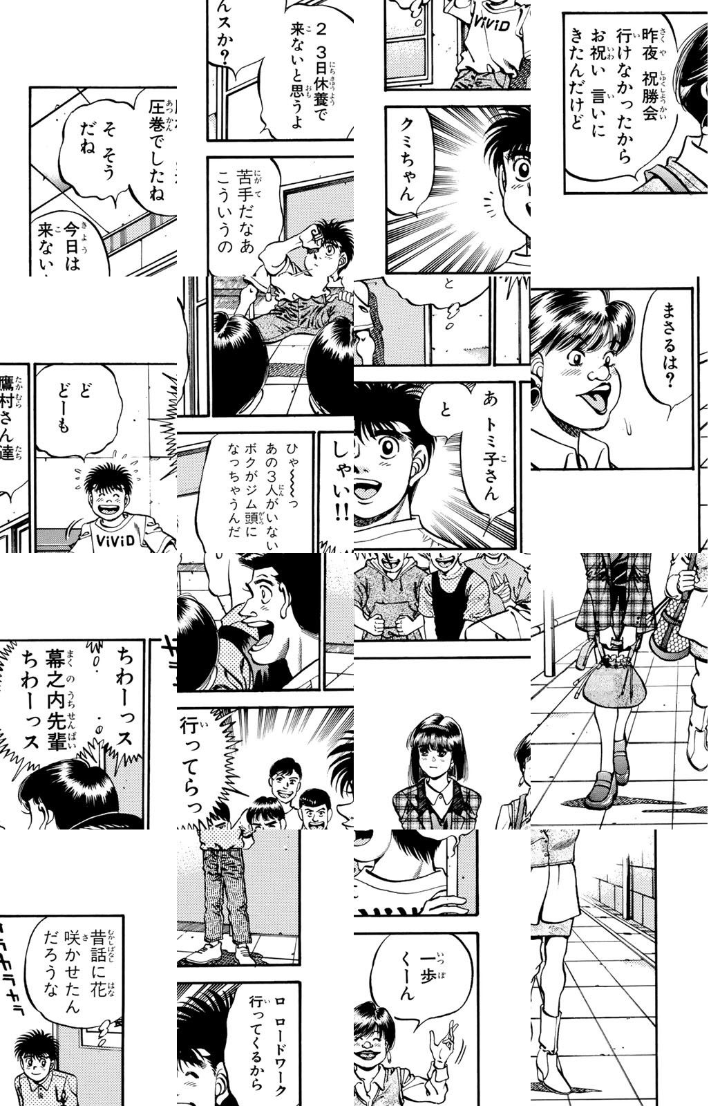 いじめられっ子だった幕之内一歩はひょんなことからボクシングに出会い、熱中していく。一歩は『強いってどういうことだろう?』という素朴な疑問を抱えながら、持ち前の頑張りで過酷な練習に耐え抜き、強くなっていく。数多の強敵との死闘を勝ち抜き、国内屈指のハードパンチを持つ日本王者となった一歩。その次なる目標は遥かなる世界王者への道! 限りなく熱く純粋な一歩のさらなる挑戦が始まった!!ひたむき少年、幕之内一歩登場!!“強い”ってどんなんだろう!?ボクも強くなりたい!!ドジでいじめられっ子の高校生幕之内一歩。ボクサー、鷹村との出会いは、一歩の拳にひそむダイナマイトパンチを呼び起こした!!プロボクサーへの夢を抱いた一歩は、鴨川ジムの入門テストに挑戦(チャレンジ)するが!?