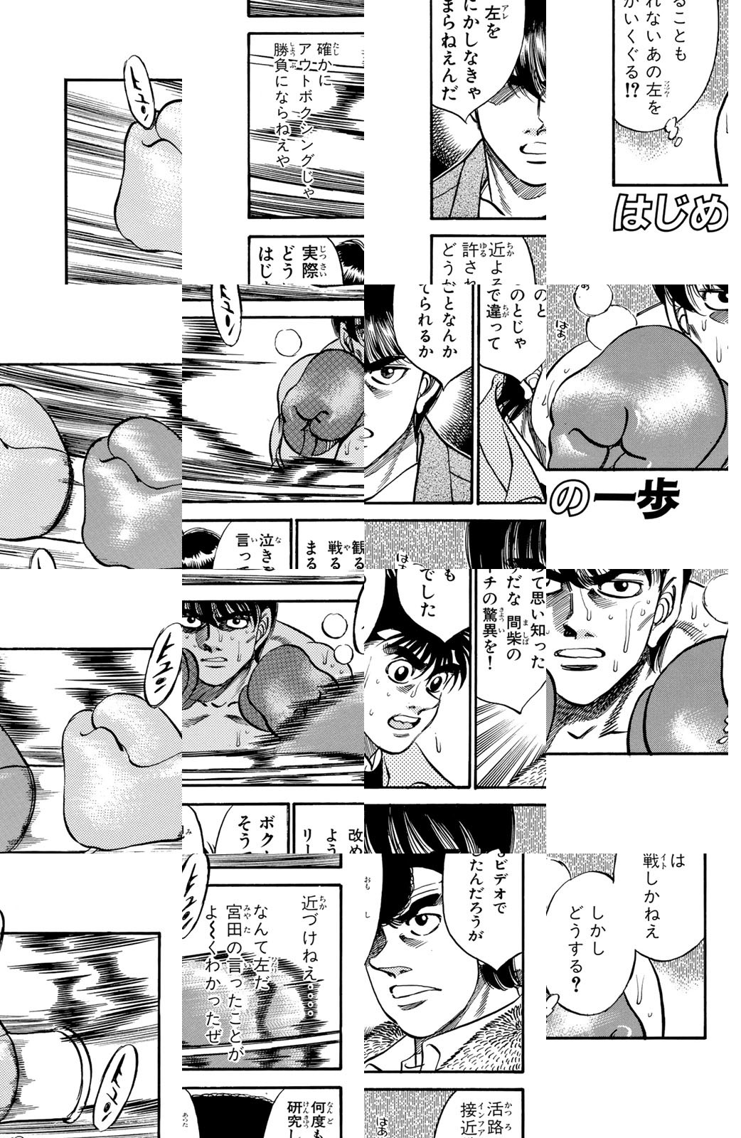 いじめられっ子だった幕之内一歩はひょんなことからボクシングに出会い、熱中していく。一歩は『強いってどういうことだろう?』という素朴な疑問を抱えながら、持ち前の頑張りで過酷な練習に耐え抜き、強くなっていく。数多の強敵との死闘を勝ち抜き、国内屈指のハードパンチを持つ日本王者となった一歩。その次なる目標は遥かなる世界王者への道! 限りなく熱く純粋な一歩のさらなる挑戦が始まった!!ひたむき少年、幕之内一歩登場!!“強い”ってどんなんだろう!?ボクも強くなりたい!!ドジでいじめられっ子の高校生幕之内一歩。ボクサー、鷹村との出会いは、一歩の拳にひそむダイナマイトパンチを呼び起こした!!プロボクサーへの夢を抱いた一歩は、鴨川ジムの入門テストに挑戦(チャレンジ)するが!?