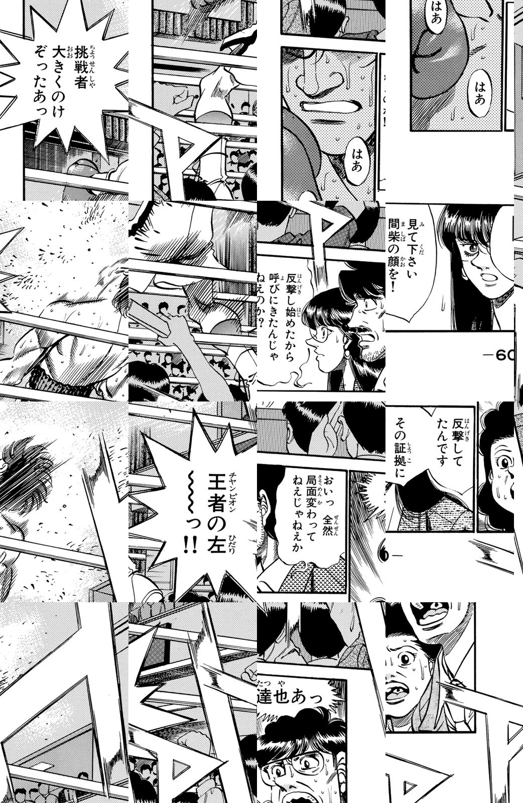 いじめられっ子だった幕之内一歩はひょんなことからボクシングに出会い、熱中していく。一歩は『強いってどういうことだろう?』という素朴な疑問を抱えながら、持ち前の頑張りで過酷な練習に耐え抜き、強くなっていく。数多の強敵との死闘を勝ち抜き、国内屈指のハードパンチを持つ日本王者となった一歩。その次なる目標は遥かなる世界王者への道! 限りなく熱く純粋な一歩のさらなる挑戦が始まった!!ひたむき少年、幕之内一歩登場!!“強い”ってどんなんだろう!?ボクも強くなりたい!!ドジでいじめられっ子の高校生幕之内一歩。ボクサー、鷹村との出会いは、一歩の拳にひそむダイナマイトパンチを呼び起こした!!プロボクサーへの夢を抱いた一歩は、鴨川ジムの入門テストに挑戦(チャレンジ)するが!?