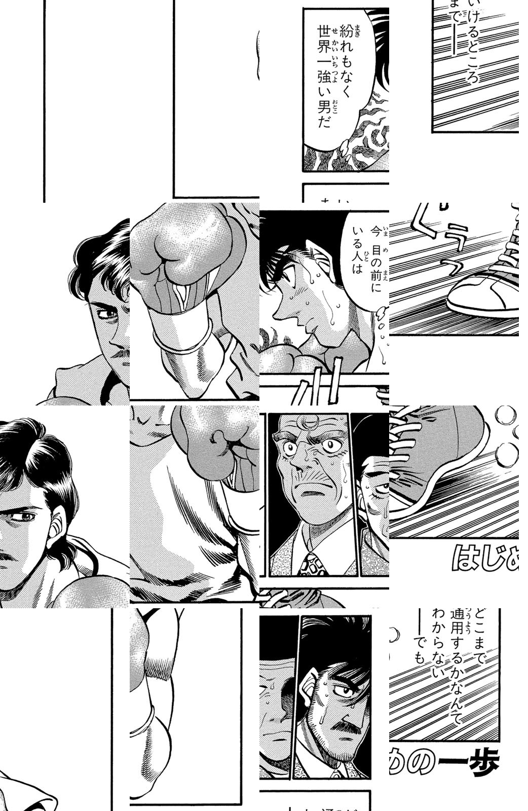 いじめられっ子だった幕之内一歩はひょんなことからボクシングに出会い、熱中していく。一歩は『強いってどういうことだろう?』という素朴な疑問を抱えながら、持ち前の頑張りで過酷な練習に耐え抜き、強くなっていく。数多の強敵との死闘を勝ち抜き、国内屈指のハードパンチを持つ日本王者となった一歩。その次なる目標は遥かなる世界王者への道! 限りなく熱く純粋な一歩のさらなる挑戦が始まった!!ひたむき少年、幕之内一歩登場!!“強い”ってどんなんだろう!?ボクも強くなりたい!!ドジでいじめられっ子の高校生幕之内一歩。ボクサー、鷹村との出会いは、一歩の拳にひそむダイナマイトパンチを呼び起こした!!プロボクサーへの夢を抱いた一歩は、鴨川ジムの入門テストに挑戦(チャレンジ)するが!?