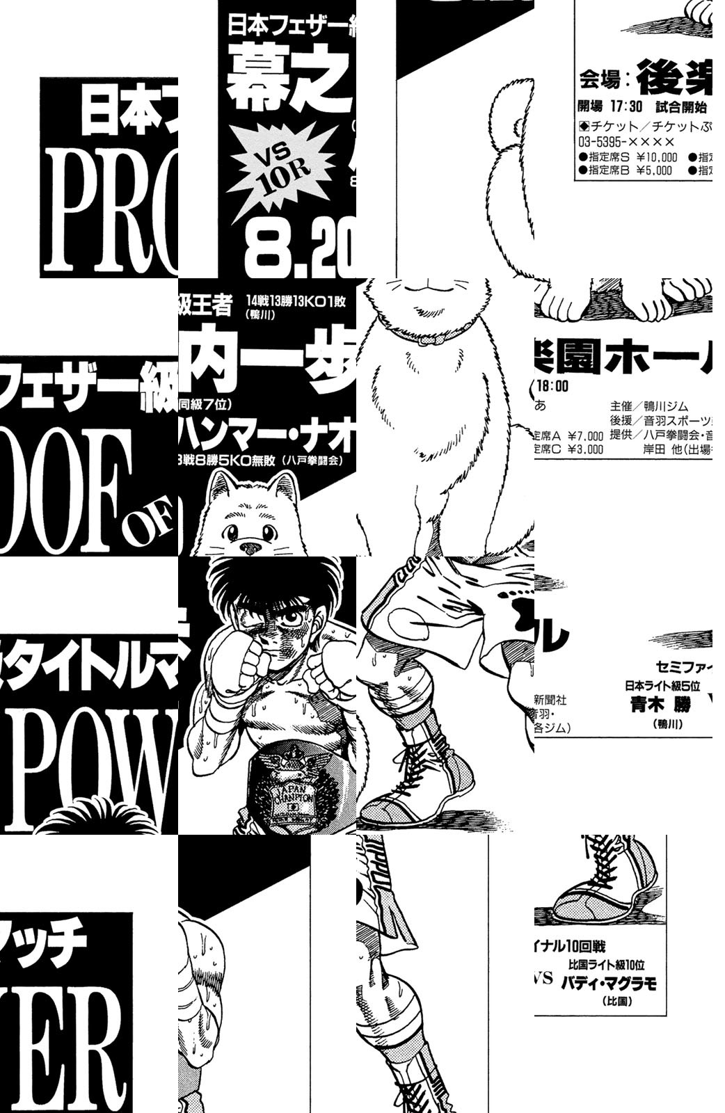 いじめられっ子だった幕之内一歩はひょんなことからボクシングに出会い、熱中していく。一歩は『強いってどういうことだろう?』という素朴な疑問を抱えながら、持ち前の頑張りで過酷な練習に耐え抜き、強くなっていく。数多の強敵との死闘を勝ち抜き、国内屈指のハードパンチを持つ日本王者となった一歩。その次なる目標は遥かなる世界王者への道! 限りなく熱く純粋な一歩のさらなる挑戦が始まった!!ひたむき少年、幕之内一歩登場!!“強い”ってどんなんだろう!?ボクも強くなりたい!!ドジでいじめられっ子の高校生幕之内一歩。ボクサー、鷹村との出会いは、一歩の拳にひそむダイナマイトパンチを呼び起こした!!プロボクサーへの夢を抱いた一歩は、鴨川ジムの入門テストに挑戦(チャレンジ)するが!?