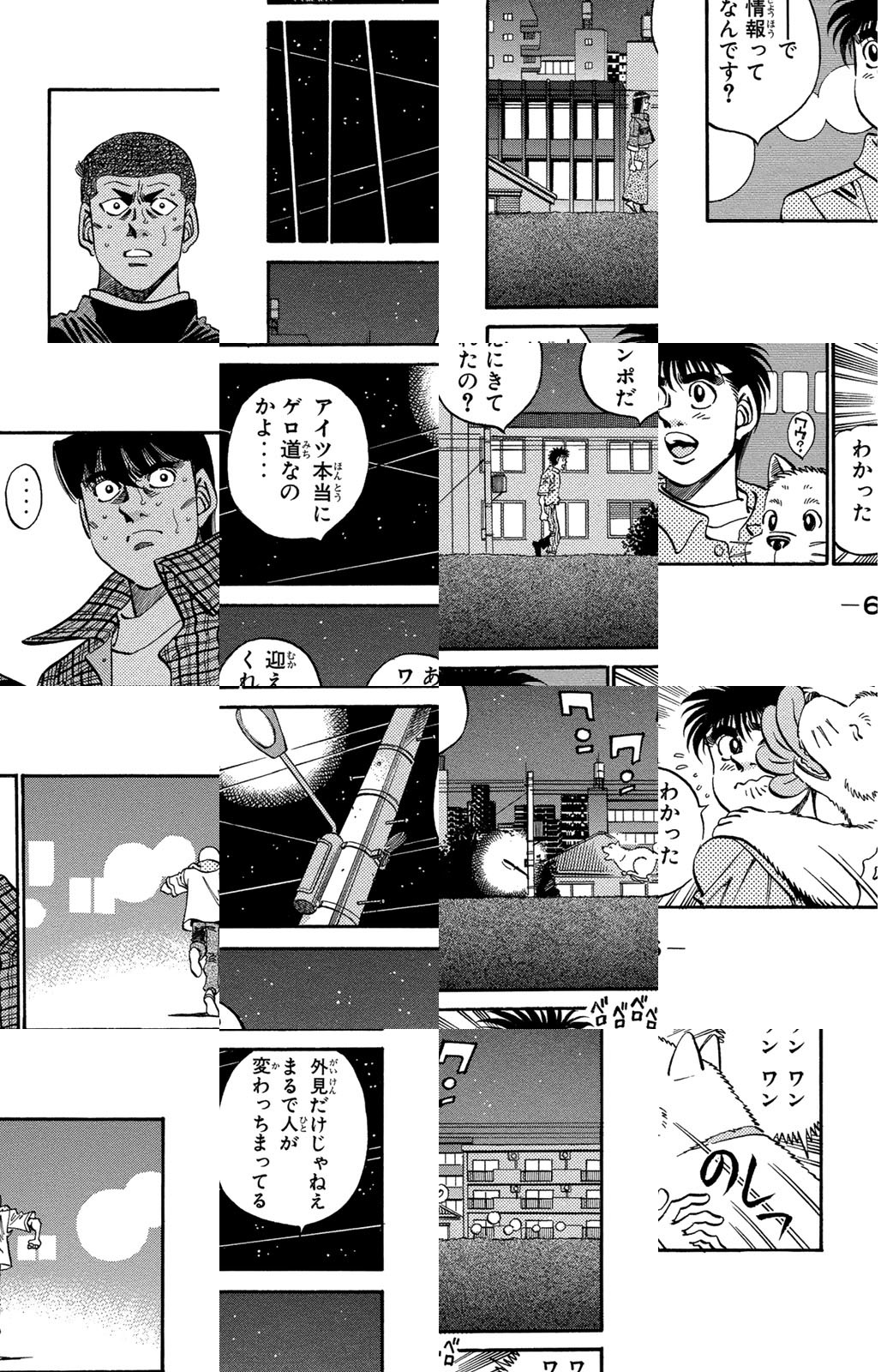 いじめられっ子だった幕之内一歩はひょんなことからボクシングに出会い、熱中していく。一歩は『強いってどういうことだろう?』という素朴な疑問を抱えながら、持ち前の頑張りで過酷な練習に耐え抜き、強くなっていく。数多の強敵との死闘を勝ち抜き、国内屈指のハードパンチを持つ日本王者となった一歩。その次なる目標は遥かなる世界王者への道! 限りなく熱く純粋な一歩のさらなる挑戦が始まった!!ひたむき少年、幕之内一歩登場!!“強い”ってどんなんだろう!?ボクも強くなりたい!!ドジでいじめられっ子の高校生幕之内一歩。ボクサー、鷹村との出会いは、一歩の拳にひそむダイナマイトパンチを呼び起こした!!プロボクサーへの夢を抱いた一歩は、鴨川ジムの入門テストに挑戦(チャレンジ)するが!?