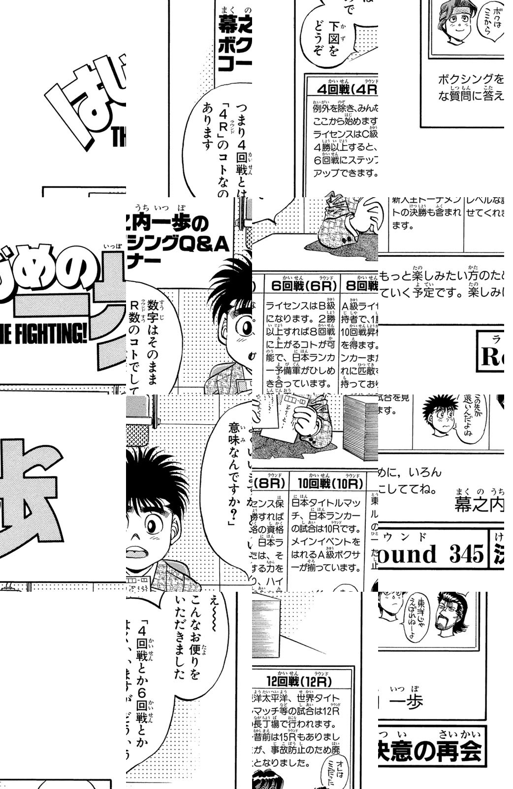 いじめられっ子だった幕之内一歩はひょんなことからボクシングに出会い、熱中していく。一歩は『強いってどういうことだろう?』という素朴な疑問を抱えながら、持ち前の頑張りで過酷な練習に耐え抜き、強くなっていく。数多の強敵との死闘を勝ち抜き、国内屈指のハードパンチを持つ日本王者となった一歩。その次なる目標は遥かなる世界王者への道! 限りなく熱く純粋な一歩のさらなる挑戦が始まった!!ひたむき少年、幕之内一歩登場!!“強い”ってどんなんだろう!?ボクも強くなりたい!!ドジでいじめられっ子の高校生幕之内一歩。ボクサー、鷹村との出会いは、一歩の拳にひそむダイナマイトパンチを呼び起こした!!プロボクサーへの夢を抱いた一歩は、鴨川ジムの入門テストに挑戦(チャレンジ)するが!?