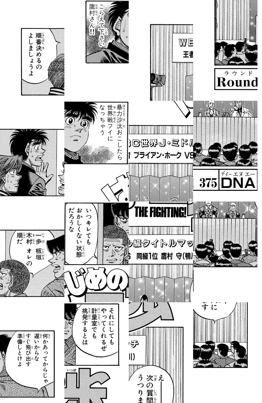 いじめられっ子だった幕之内一歩はひょんなことからボクシングに出会い、熱中していく。一歩は『強いってどういうことだろう?』という素朴な疑問を抱えながら、持ち前の頑張りで過酷な練習に耐え抜き、強くなっていく。数多の強敵との死闘を勝ち抜き、国内屈指のハードパンチを持つ日本王者となった一歩。その次なる目標は遥かなる世界王者への道! 限りなく熱く純粋な一歩のさらなる挑戦が始まった!!ひたむき少年、幕之内一歩登場!!“強い”ってどんなんだろう!?ボクも強くなりたい!!ドジでいじめられっ子の高校生幕之内一歩。ボクサー、鷹村との出会いは、一歩の拳にひそむダイナマイトパンチを呼び起こした!!プロボクサーへの夢を抱いた一歩は、鴨川ジムの入門テストに挑戦(チャレンジ)するが!?