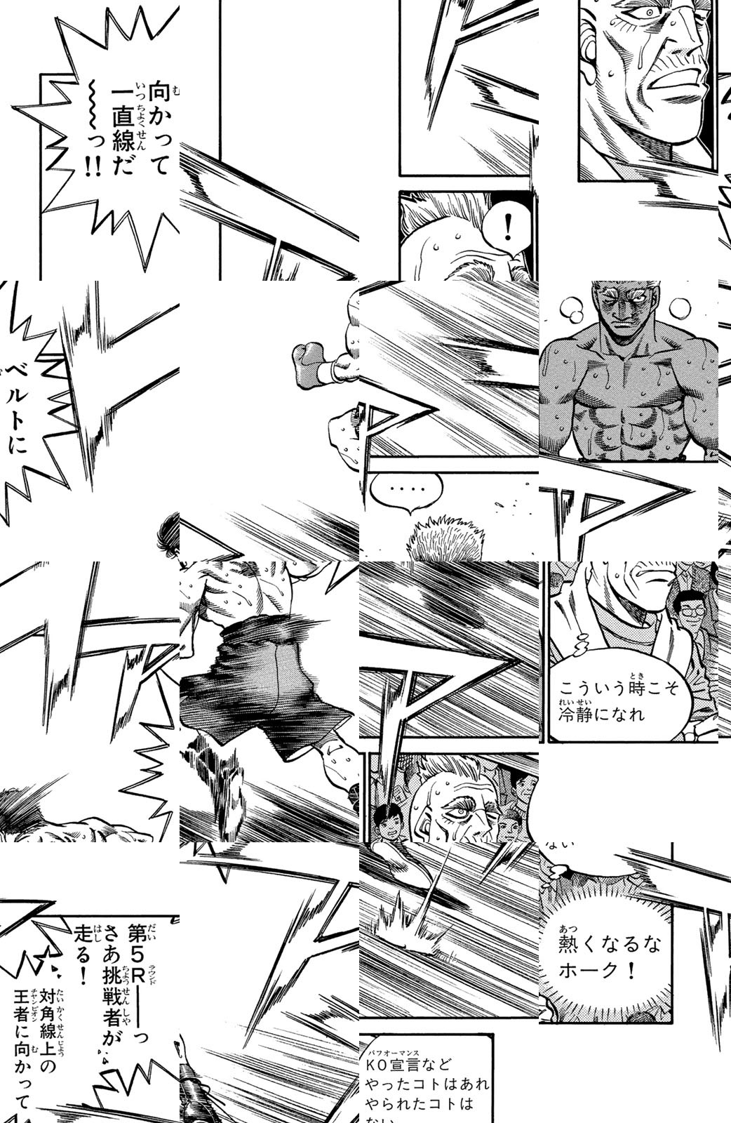 いじめられっ子だった幕之内一歩はひょんなことからボクシングに出会い、熱中していく。一歩は『強いってどういうことだろう?』という素朴な疑問を抱えながら、持ち前の頑張りで過酷な練習に耐え抜き、強くなっていく。数多の強敵との死闘を勝ち抜き、国内屈指のハードパンチを持つ日本王者となった一歩。その次なる目標は遥かなる世界王者への道! 限りなく熱く純粋な一歩のさらなる挑戦が始まった!!ひたむき少年、幕之内一歩登場!!“強い”ってどんなんだろう!?ボクも強くなりたい!!ドジでいじめられっ子の高校生幕之内一歩。ボクサー、鷹村との出会いは、一歩の拳にひそむダイナマイトパンチを呼び起こした!!プロボクサーへの夢を抱いた一歩は、鴨川ジムの入門テストに挑戦(チャレンジ)するが!?
