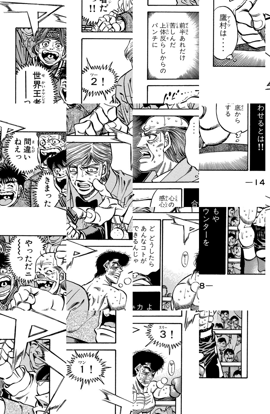 いじめられっ子だった幕之内一歩はひょんなことからボクシングに出会い、熱中していく。一歩は『強いってどういうことだろう?』という素朴な疑問を抱えながら、持ち前の頑張りで過酷な練習に耐え抜き、強くなっていく。数多の強敵との死闘を勝ち抜き、国内屈指のハードパンチを持つ日本王者となった一歩。その次なる目標は遥かなる世界王者への道! 限りなく熱く純粋な一歩のさらなる挑戦が始まった!!ひたむき少年、幕之内一歩登場!!“強い”ってどんなんだろう!?ボクも強くなりたい!!ドジでいじめられっ子の高校生幕之内一歩。ボクサー、鷹村との出会いは、一歩の拳にひそむダイナマイトパンチを呼び起こした!!プロボクサーへの夢を抱いた一歩は、鴨川ジムの入門テストに挑戦(チャレンジ)するが!?