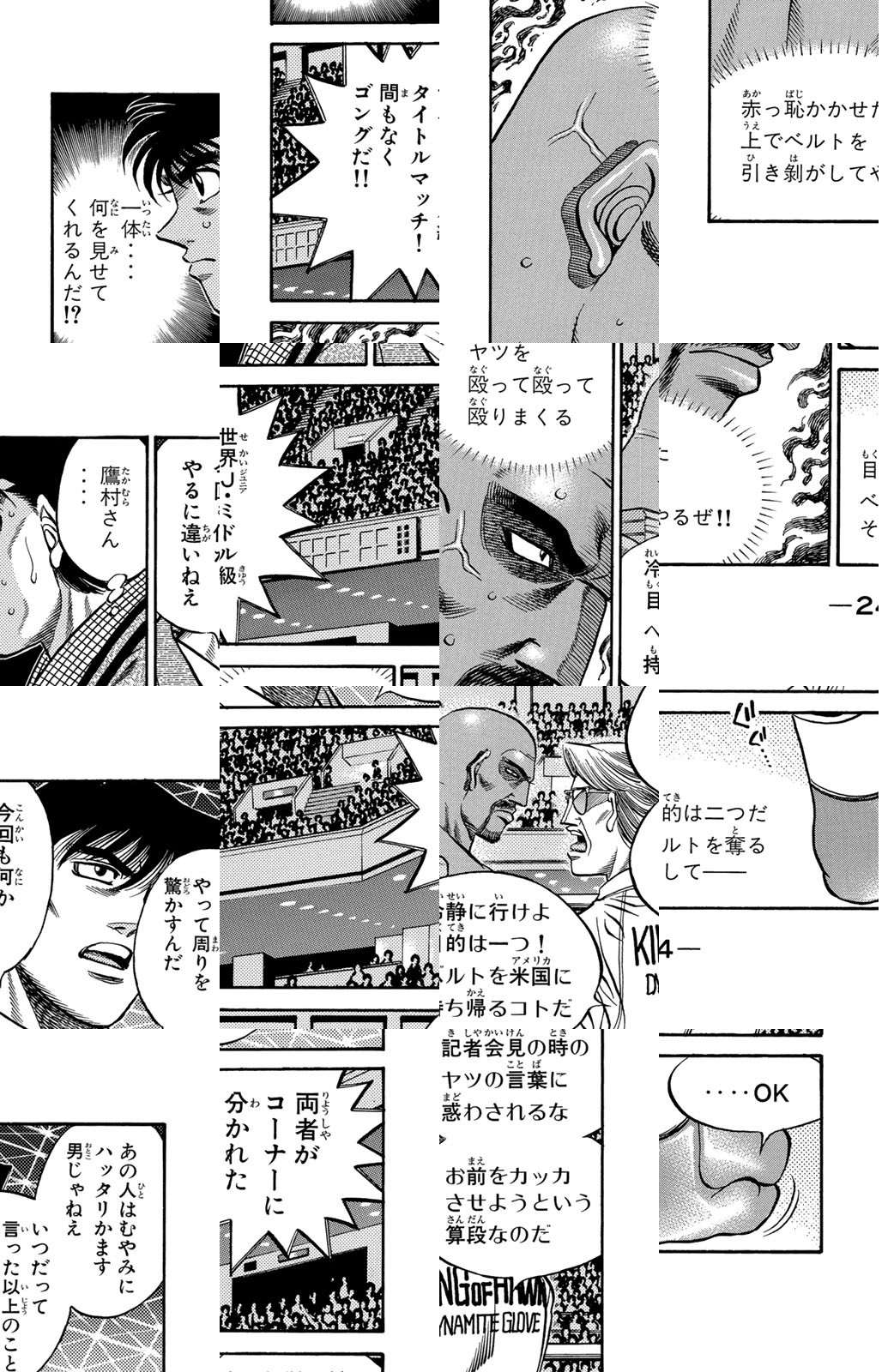 いじめられっ子だった幕之内一歩はひょんなことからボクシングに出会い、熱中していく。一歩は『強いってどういうことだろう?』という素朴な疑問を抱えながら、持ち前の頑張りで過酷な練習に耐え抜き、強くなっていく。数多の強敵との死闘を勝ち抜き、国内屈指のハードパンチを持つ日本王者となった一歩。その次なる目標は遥かなる世界王者への道! 限りなく熱く純粋な一歩のさらなる挑戦が始まった!!ひたむき少年、幕之内一歩登場!!“強い”ってどんなんだろう!?ボクも強くなりたい!!ドジでいじめられっ子の高校生幕之内一歩。ボクサー、鷹村との出会いは、一歩の拳にひそむダイナマイトパンチを呼び起こした!!プロボクサーへの夢を抱いた一歩は、鴨川ジムの入門テストに挑戦(チャレンジ)するが!?