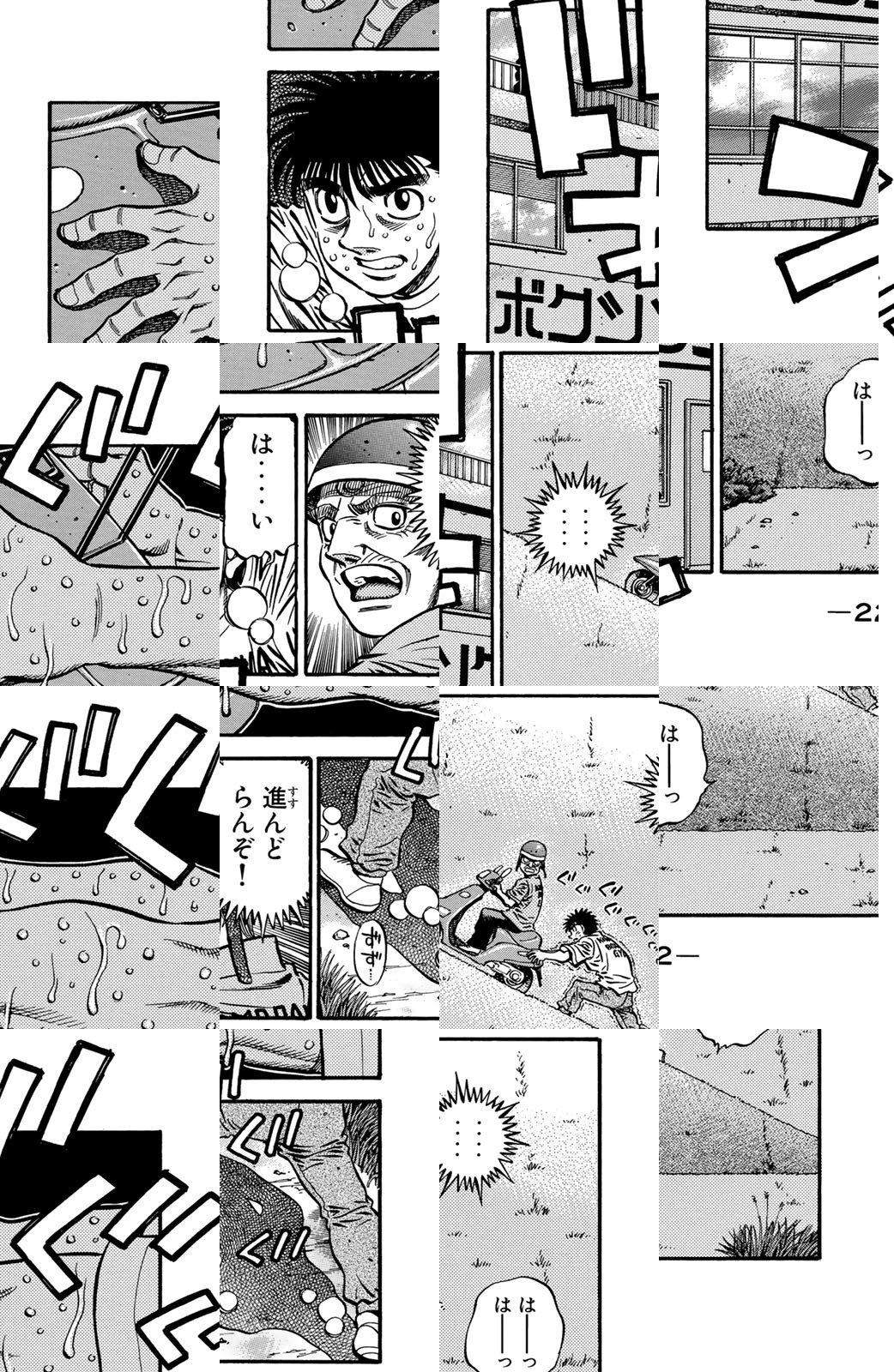 いじめられっ子だった幕之内一歩はひょんなことからボクシングに出会い、熱中していく。一歩は『強いってどういうことだろう?』という素朴な疑問を抱えながら、持ち前の頑張りで過酷な練習に耐え抜き、強くなっていく。数多の強敵との死闘を勝ち抜き、国内屈指のハードパンチを持つ日本王者となった一歩。その次なる目標は遥かなる世界王者への道! 限りなく熱く純粋な一歩のさらなる挑戦が始まった!!ひたむき少年、幕之内一歩登場!!“強い”ってどんなんだろう!?ボクも強くなりたい!!ドジでいじめられっ子の高校生幕之内一歩。ボクサー、鷹村との出会いは、一歩の拳にひそむダイナマイトパンチを呼び起こした!!プロボクサーへの夢を抱いた一歩は、鴨川ジムの入門テストに挑戦(チャレンジ)するが!?