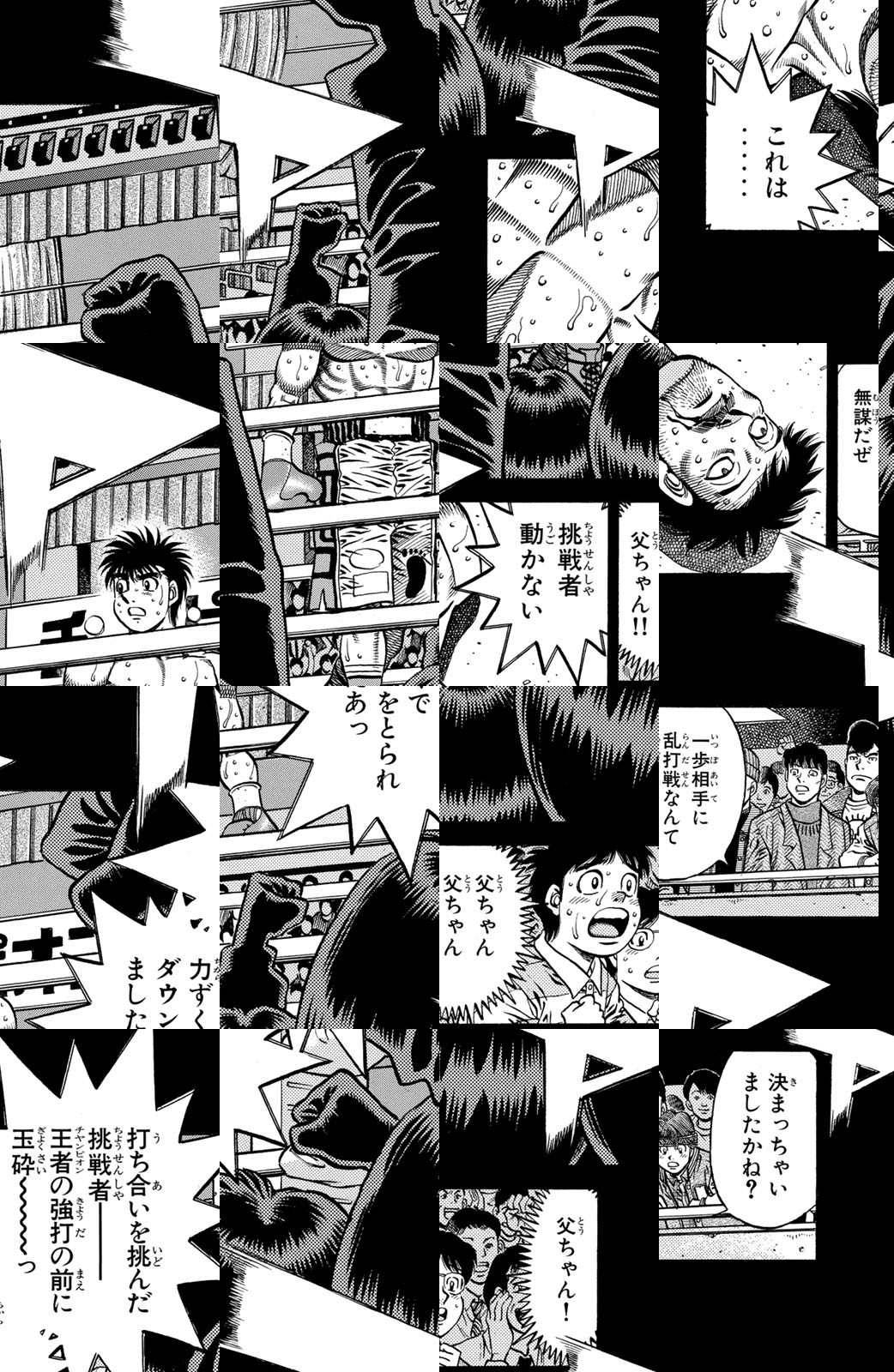 いじめられっ子だった幕之内一歩はひょんなことからボクシングに出会い、熱中していく。一歩は『強いってどういうことだろう?』という素朴な疑問を抱えながら、持ち前の頑張りで過酷な練習に耐え抜き、強くなっていく。数多の強敵との死闘を勝ち抜き、国内屈指のハードパンチを持つ日本王者となった一歩。その次なる目標は遥かなる世界王者への道! 限りなく熱く純粋な一歩のさらなる挑戦が始まった!!ひたむき少年、幕之内一歩登場!!“強い”ってどんなんだろう!?ボクも強くなりたい!!ドジでいじめられっ子の高校生幕之内一歩。ボクサー、鷹村との出会いは、一歩の拳にひそむダイナマイトパンチを呼び起こした!!プロボクサーへの夢を抱いた一歩は、鴨川ジムの入門テストに挑戦(チャレンジ)するが!?