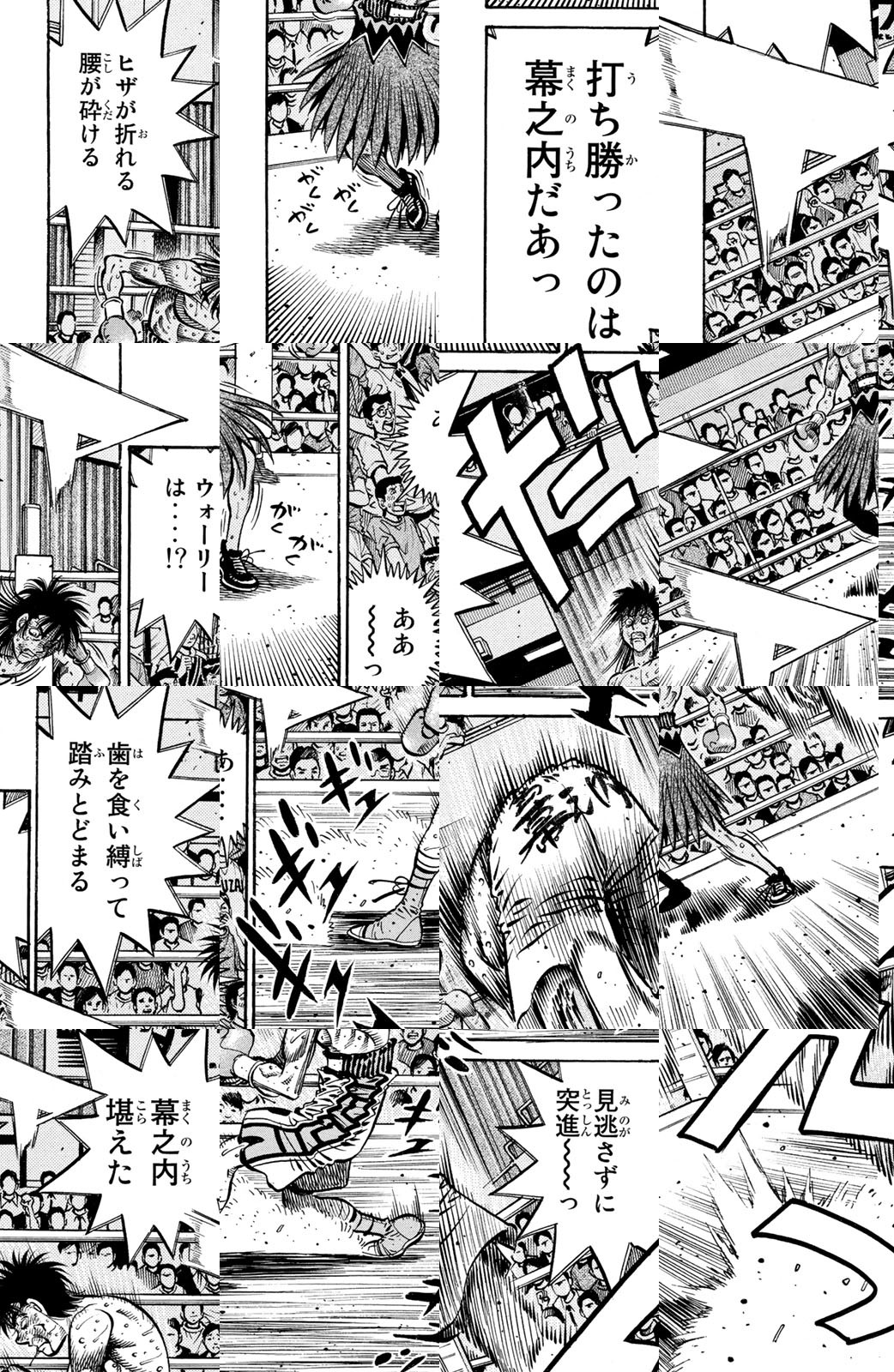 いじめられっ子だった幕之内一歩はひょんなことからボクシングに出会い、熱中していく。一歩は『強いってどういうことだろう?』という素朴な疑問を抱えながら、持ち前の頑張りで過酷な練習に耐え抜き、強くなっていく。数多の強敵との死闘を勝ち抜き、国内屈指のハードパンチを持つ日本王者となった一歩。その次なる目標は遥かなる世界王者への道! 限りなく熱く純粋な一歩のさらなる挑戦が始まった!!ひたむき少年、幕之内一歩登場!!“強い”ってどんなんだろう!?ボクも強くなりたい!!ドジでいじめられっ子の高校生幕之内一歩。ボクサー、鷹村との出会いは、一歩の拳にひそむダイナマイトパンチを呼び起こした!!プロボクサーへの夢を抱いた一歩は、鴨川ジムの入門テストに挑戦(チャレンジ)するが!?