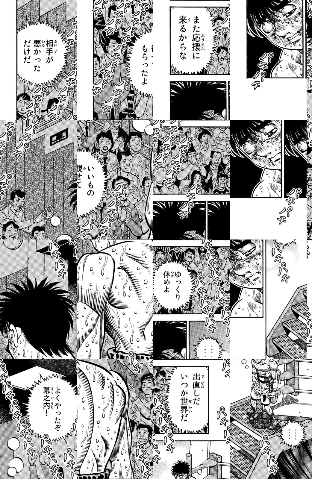 いじめられっ子だった幕之内一歩はひょんなことからボクシングに出会い、熱中していく。一歩は『強いってどういうことだろう?』という素朴な疑問を抱えながら、持ち前の頑張りで過酷な練習に耐え抜き、強くなっていく。数多の強敵との死闘を勝ち抜き、国内屈指のハードパンチを持つ日本王者となった一歩。その次なる目標は遥かなる世界王者への道! 限りなく熱く純粋な一歩のさらなる挑戦が始まった!!ひたむき少年、幕之内一歩登場!!“強い”ってどんなんだろう!?ボクも強くなりたい!!ドジでいじめられっ子の高校生幕之内一歩。ボクサー、鷹村との出会いは、一歩の拳にひそむダイナマイトパンチを呼び起こした!!プロボクサーへの夢を抱いた一歩は、鴨川ジムの入門テストに挑戦(チャレンジ)するが!?