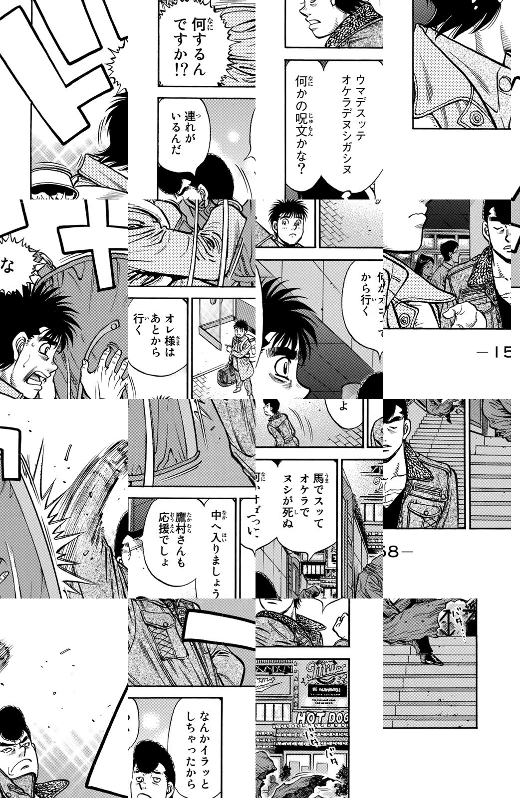 いじめられっ子だった幕之内一歩はひょんなことからボクシングに出会い、熱中していく。一歩は『強いってどういうことだろう?』という素朴な疑問を抱えながら、持ち前の頑張りで過酷な練習に耐え抜き、強くなっていく。数多の強敵との死闘を勝ち抜き、国内屈指のハードパンチを持つ日本王者となった一歩。その次なる目標は遥かなる世界王者への道! 限りなく熱く純粋な一歩のさらなる挑戦が始まった!!ひたむき少年、幕之内一歩登場!!“強い”ってどんなんだろう!?ボクも強くなりたい!!ドジでいじめられっ子の高校生幕之内一歩。ボクサー、鷹村との出会いは、一歩の拳にひそむダイナマイトパンチを呼び起こした!!プロボクサーへの夢を抱いた一歩は、鴨川ジムの入門テストに挑戦(チャレンジ)するが!?