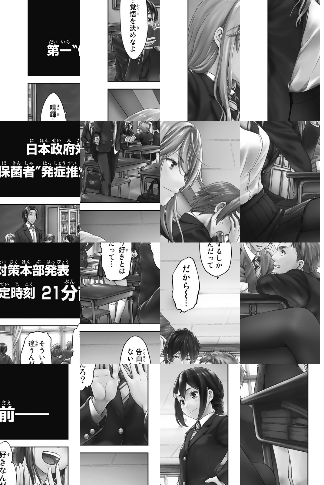 高校生・天宮晴輝の住む町は、ある日突然、人を襲う“保菌者”によって埋め尽くされてしまった…。蠢く大量の“保菌者”から逃げ切れるのか!? 絶望的サバイバル、開幕! 変わり果てた人間が町を襲い、変わり果てた町が人を阻む!! いつもの道を、命を懸けて駆け抜けろ!友人達によって、学校の倉庫に閉じ込められてしまった高校生・天宮晴輝と、そこに居合わせた少女・磯波きらら。ただのいたずらのはずが……、なぜか開かない扉。二人は三日に及ぶ苦闘の末、どうにか倉庫を脱出した。ところが、外の世界は一変。人を襲う“保菌者”によって、町は埋め尽くされていた!!