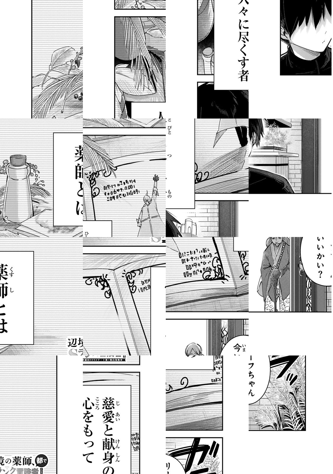 田舎者の少年・リーフが最強の“調薬”スキルで成り上がる! 人生を変える出会いが都会にはいっぱい!! 無自覚無双な痛快“調薬”ファンタジーがここに開幕!!最強の“調薬”スキルで成り上がれ!! 田舎に住む少年・リーフは、ある日許嫁に裏切られ、すべてを失ってしまう。しかし、大貴族のお嬢様・プリシラと出会ったことでリーフの人生は激変! 「薬を作れるだけなはず」の少年が、世界最強の冒険者になっていく!!無自覚無双な幸せアーバンライフ、ここに開幕!!