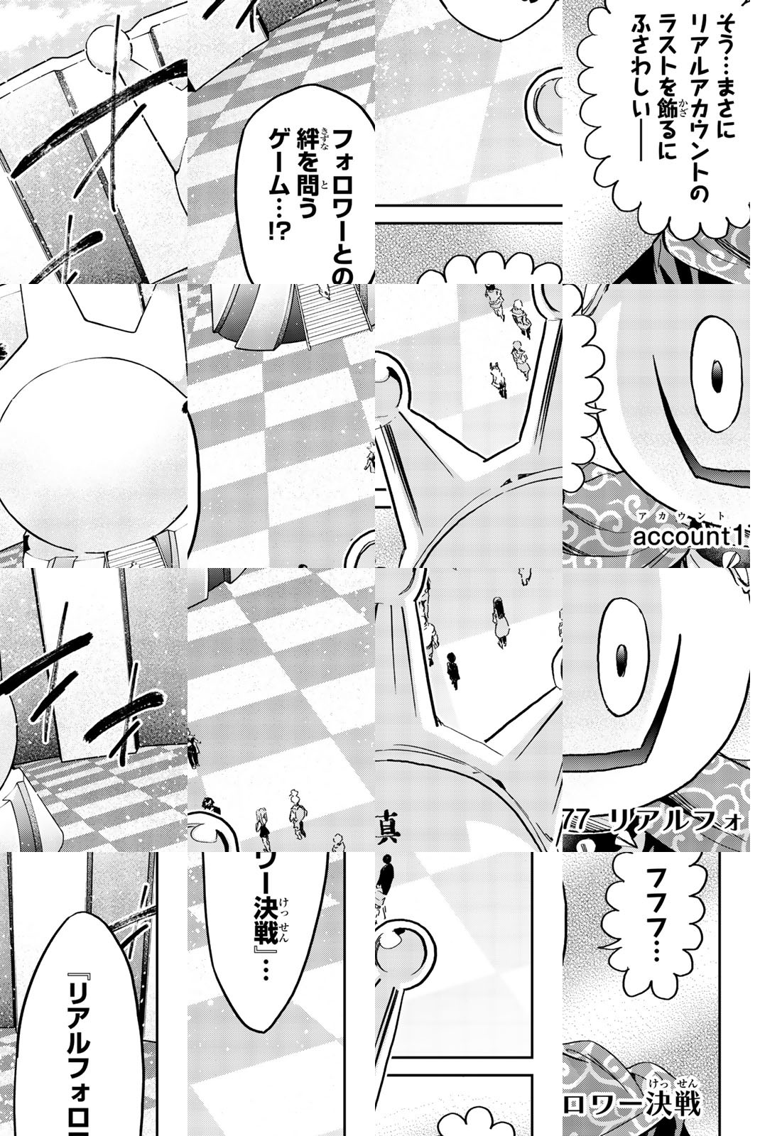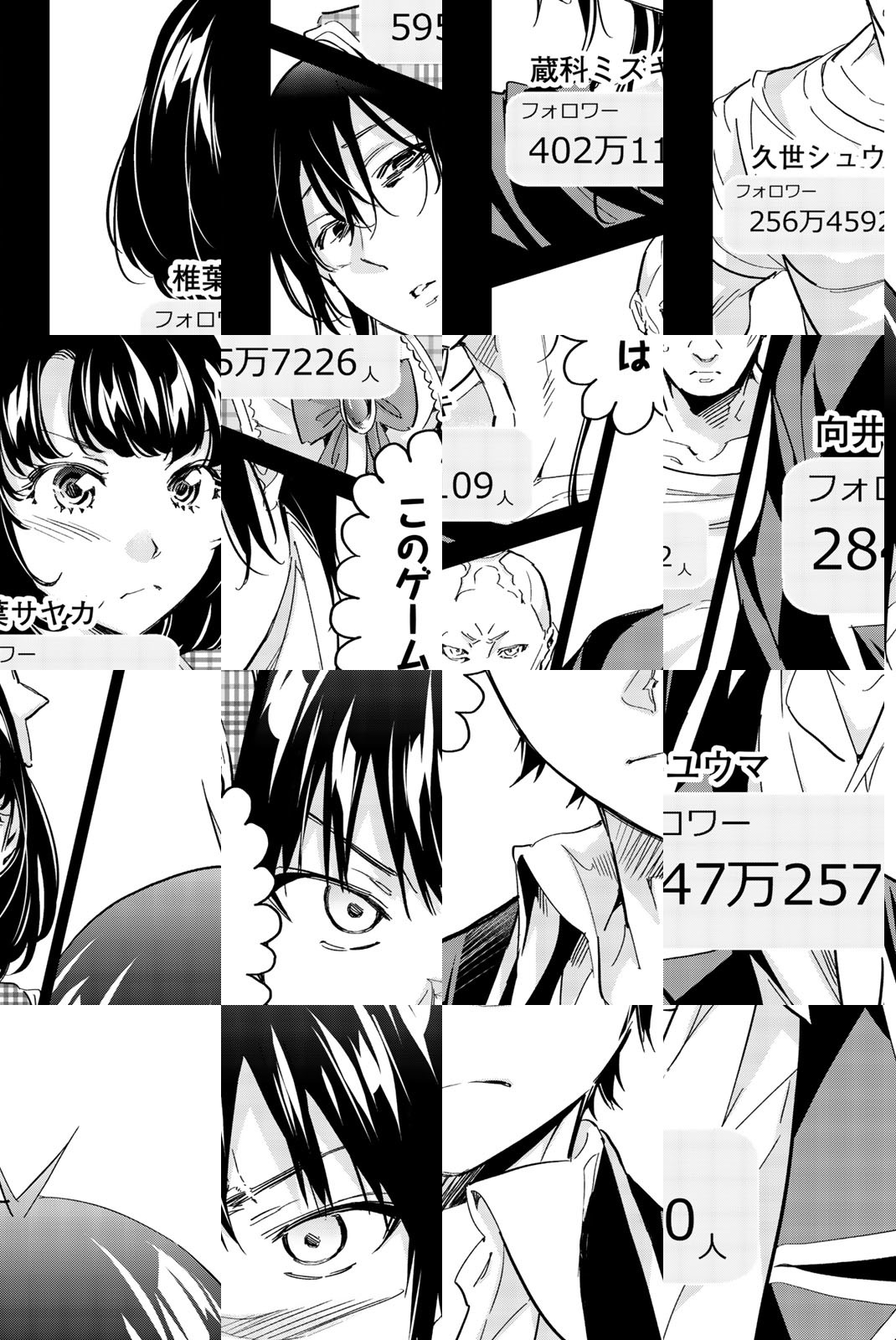 キミは、誰にホントに必要とされてる? 舞台はSNS! 賭けるはツナガリ! 新世紀型デスゲーム始動!! 衝撃と興奮の「頭脳バトルコンペ」受賞作!!国民的SNS『リアルアカウント』を舞台に、新世紀型デスゲーム開幕!! 『リアルアカウント』の世界にネット依存の柏木アタルほか1万人が、突如吸い込まれた! 「フォロワー0で即死亡」「中の人が死ぬとフォロワーも即死亡」という条件のもと、彼らは人とのツナガリを問う過酷な「ゲーム」に挑む!! 最初のゲームは「リアルフォロワー診断」!!