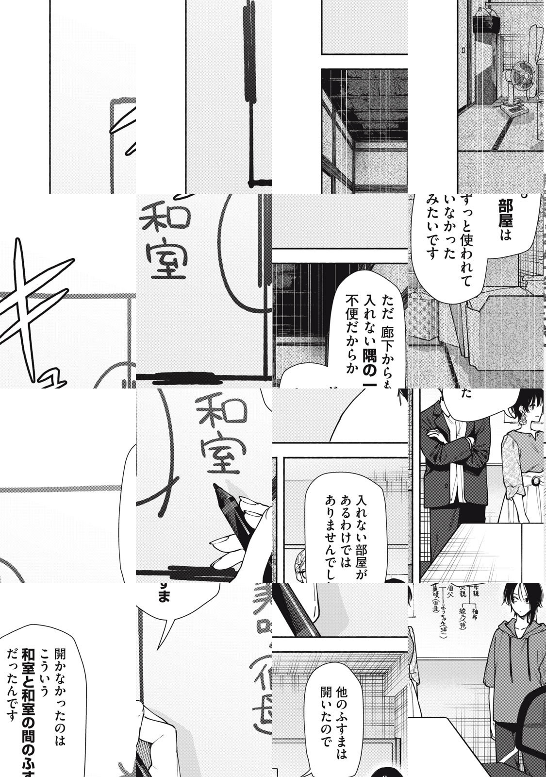 オカルト専門ライターの「私」の元にもたらされた、とある家の間取り図。一見ごく普通の一戸建て住宅だが、知人の設計士・栗原に意見を求めると、彼は「この家には変なところがある」と話し始めた……。この間取り図には、何かが隠されている…。話題の不動産ミステリー、待望のコミカライズ!!