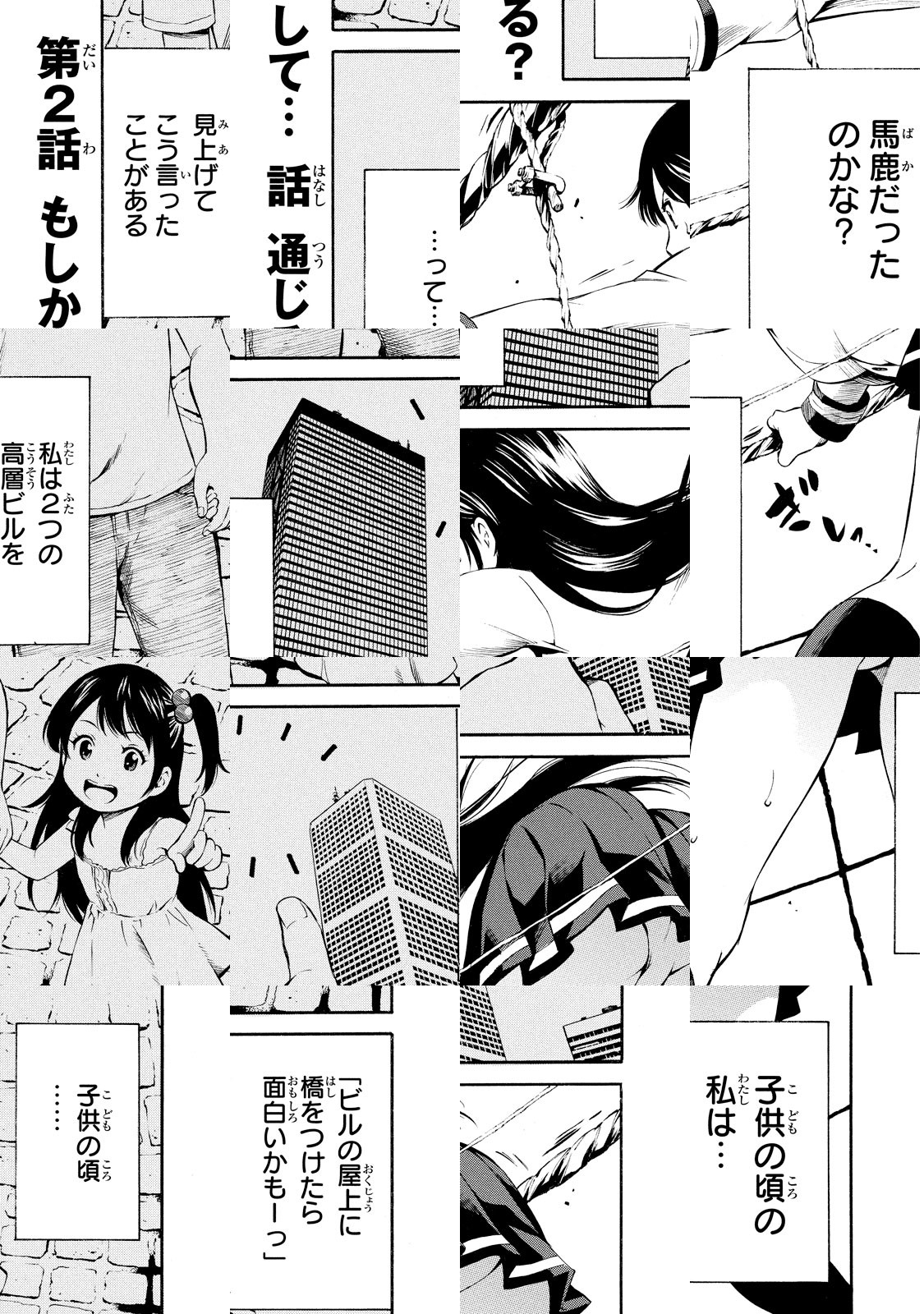 女子高生・ゆりが、いつの間にかいた場所は、超高層ビルの屋上。見渡す限りビルが立ち並ぶその場所は、仮面をかぶった男が斧で人の頭をかち割っている「訳のわかんない世界」だった。『亜人』の原作者・三浦追儺と、『ボックス!』の作画・大羽隆廣がタッグを組んでおくる、緊迫の高層ビル群サスペンス!!「私は学校にいたはずなのに‥」 女子高生・ゆりが、いつの間にかいた場所は、超高層ビルの屋上! 目の前では、仮面をかぶった男が、斧で人を殺していた。どうやらこれは、夢や幻ではなく「現実」! 仮面の男に追われながら、出口を探してビル内を逃げるゆりが目にしたのは「地上に降りる事はできない」と書かれた看板。なんかムカついてきた! こんなふざけた世界で死んでたまるものかっ!! ゆりのサバイバルが始まる!