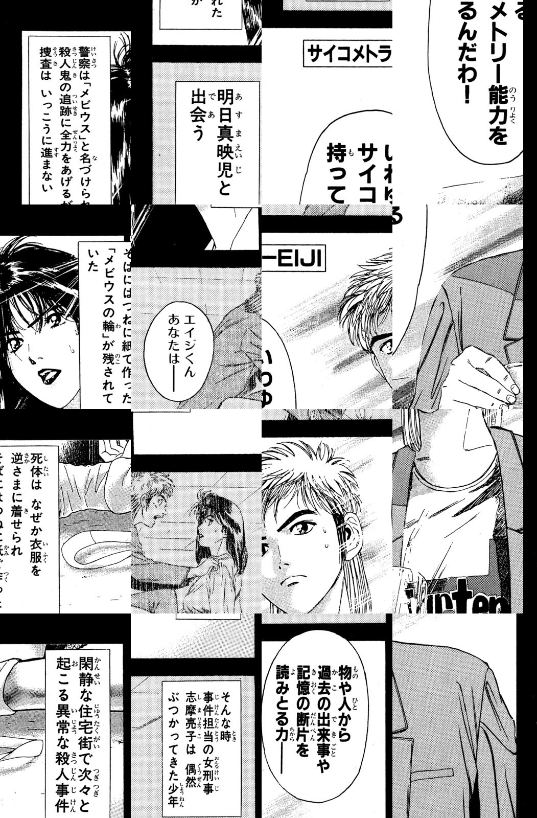 夜ごと起こる残忍な婦女暴行殺人――。殺人鬼メビウスの正体を暴くため、物や人の記憶を読みとるサイコメトリー能力をもつ少年、映児と美人刑事、志摩が立ちあがった!!