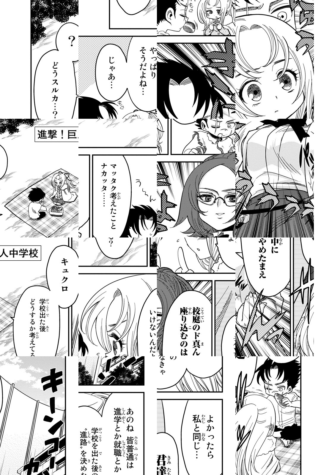 人間と巨人がともに通う「進撃中学校」に入学したエレンとミカサ。しかし、5年前のある事件がきっかけで、エレンは巨人を憎んでいた。その忌まわしき事件とは‥‥!? エレンとミカサとリヴァイと巨人が全員、同中!? 『進撃の巨人』の公式スピンオフコメディ!人間と巨人がともに通う「進撃中学校」に入学したエレンとミカサ。しかし、5年前のある事件がきっかけで、エレンは巨人を憎んでいた。その忌まわしき事件とは‥‥!? エレンとミカサとリヴァイと巨人が全員、同中!? 『進撃の巨人』の公式スピンオフコメディ!