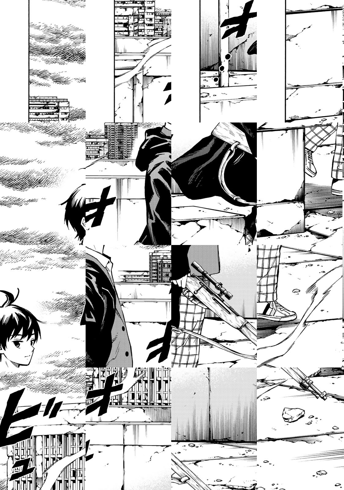 『天空侵犯』新章(ニューフェイズ)! 高層ビル × 吊り橋 × 仮面殺人鬼!!! 少年はこの冷酷な「世界」で生き残れるのか!?宇宙飛行士に憧れていた普通の少年・千夜は、学校の屋上で天を貫く「塔」のようなものを見た瞬間、突如異世界に飛ばされてしまう。そこは高層ビル群の間が吊り橋でつながれた荒廃した世界。戸惑う千夜の前で美少女がビルから飛び降り、血まみれの刃物を携えた仮面殺人鬼が現れる!!
