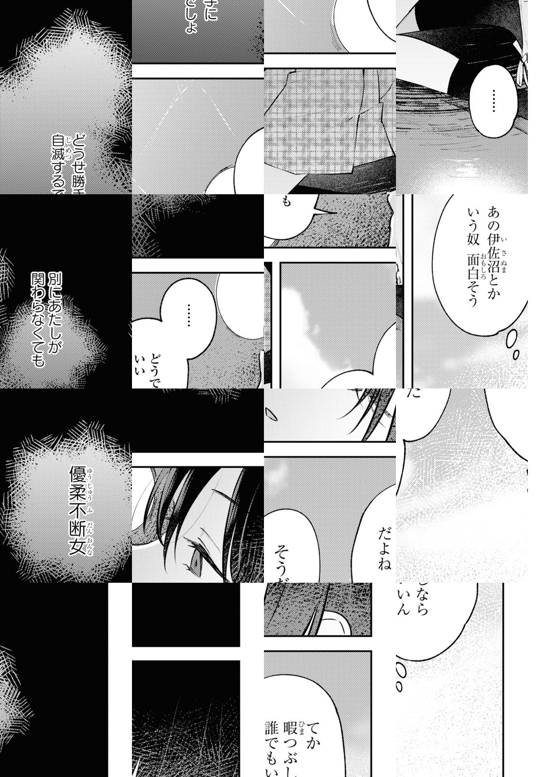 吉沢来未は、成績優秀で人当たりもいい生徒会長…というのは表向きの顔で、実際は母の束縛や教師の過度な期待に悩む日々を送っていた。ある時、不登校気味な同級生・直井を気にかけてほしいと担任教師に言われ渋々会いにいく吉沢だったが、直井は吉沢の本心を見透かしたように蔑むだけだった。ストレスも爆発寸前、吉沢は不意に万引きをしそうになる気持ちをギリギリで抑えるが、その一部始終を直井に録画されていて……逃げ場のない日常でもがく二人の、バイオレンス青春ストーリー。