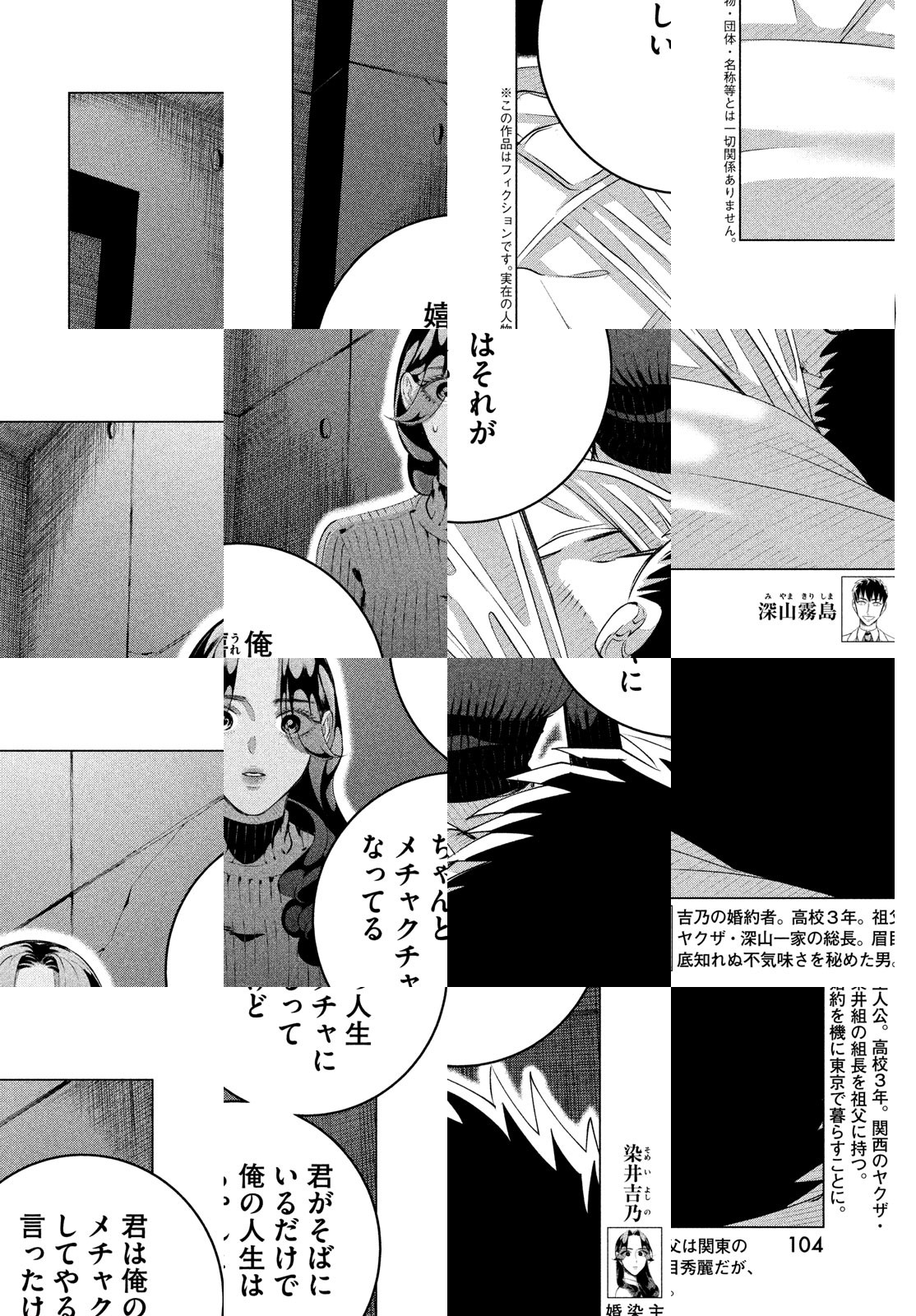 極道の家で生まれ育った女子高生、染井吉乃。家庭環境は特殊でも、おとなしく平穏に日々を過ごしてきた。婚約者の深山霧島(みやま・きりしま)と出会うまでは――!デビュー作『春の呪い』で「このマンガがすごい!2017」(オンナ編)2位にランクインした小西明日翔の最新作。はみ出し者たちが織りなす、スリルと笑いが融合した極道エンタメがここに誕生!!