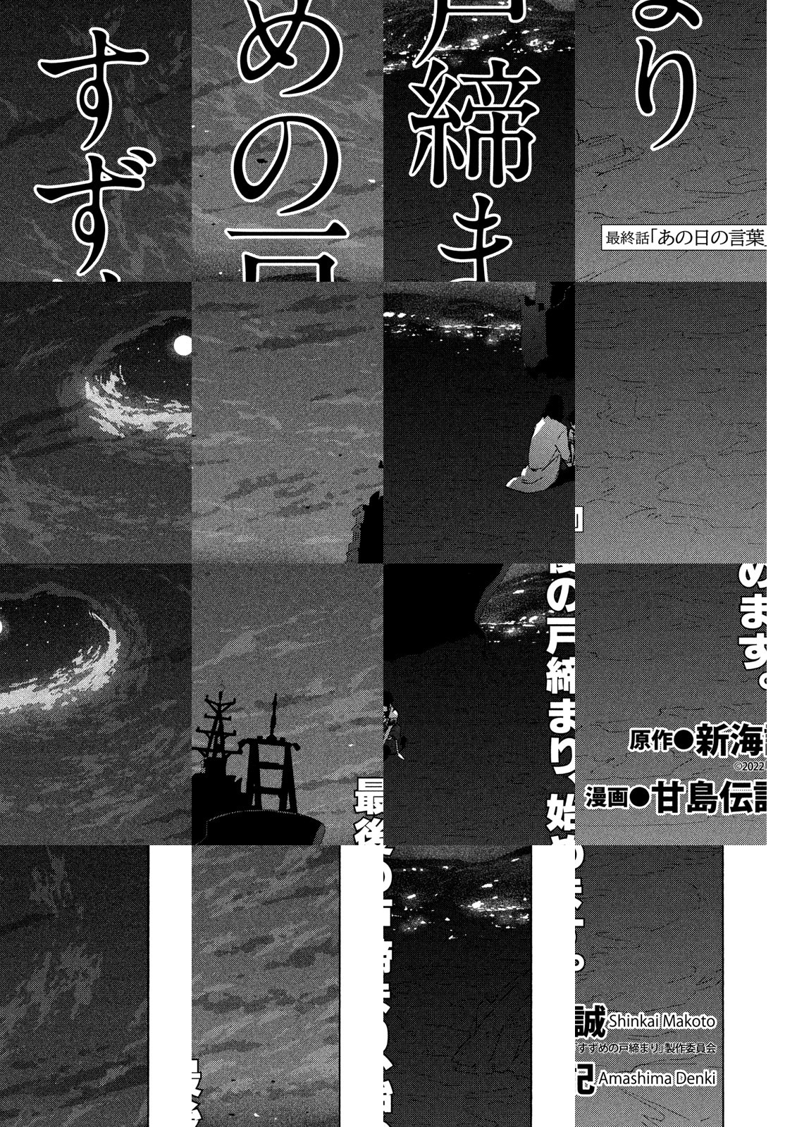 九州の港町で暮らす17歳の少女・鈴芽は、ある日「扉を探している」という美しい青年と出会う。彼を探して辿り着いた廃墟で見つけた、古びた扉。導かれるように手を伸ばすと、時間も、空間も超越した光景が広がっていた──。 大ヒット映画『君の名は。』、『天気の子』ほか、国内外から絶大な支持を得る新海誠監督の最新作を、アフタヌーン四季賞出身の期待の新鋭が完全コミカライズ!