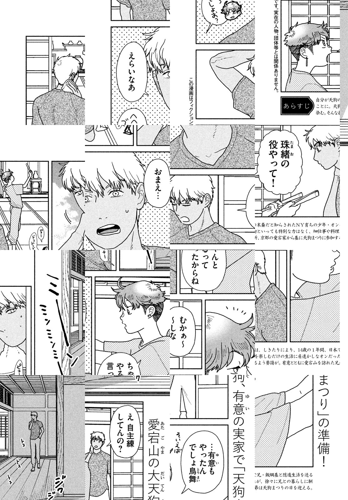 日本で暮らす兄は天狗だった!? 自分が天狗の末裔だったことを知らされたアメリカ在住の弟オンは、しきたりで14歳の1年間、日本で兄・飯綱基と暮らすことになりました。