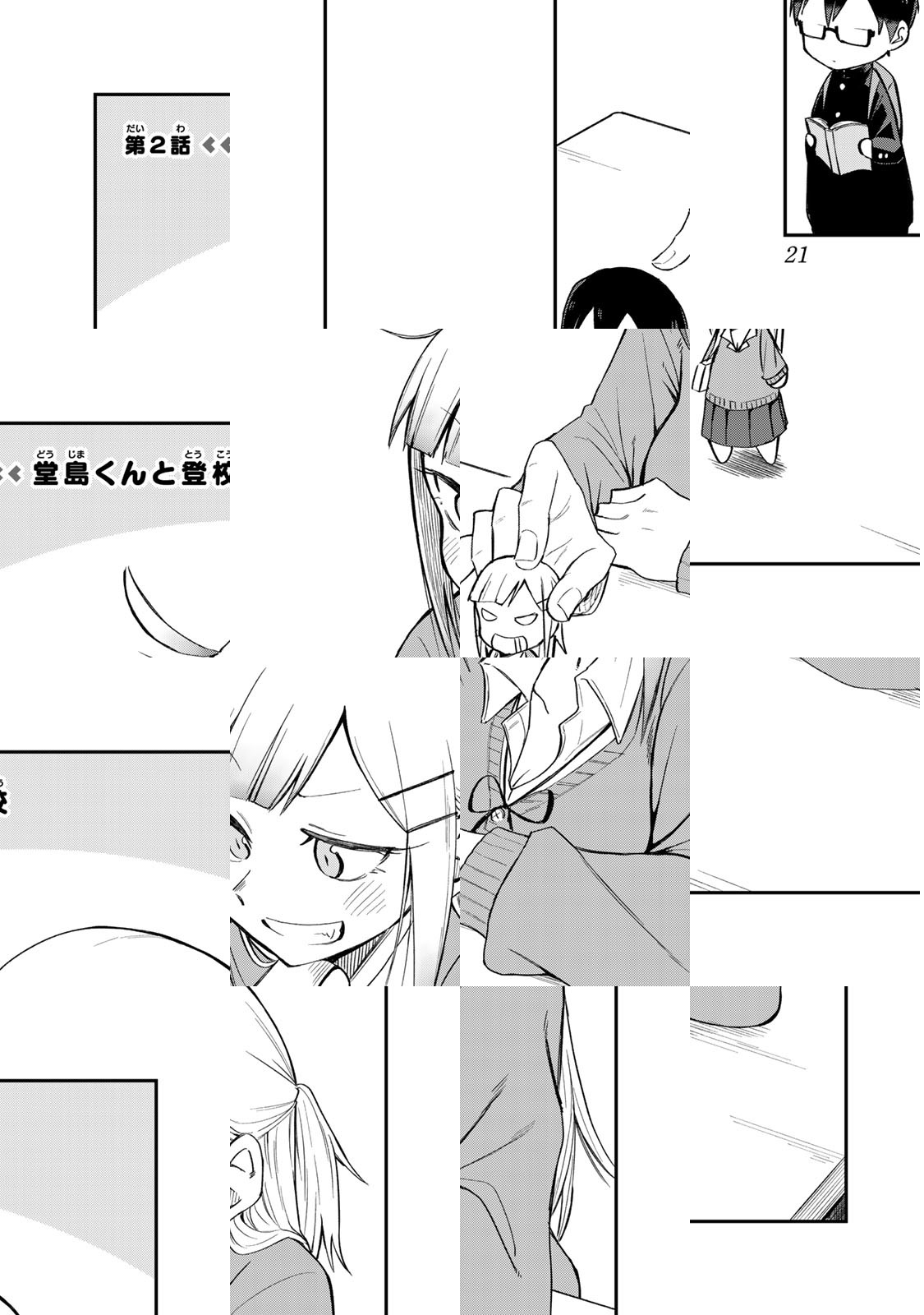 隣の席の堂島はいっつも無表情。でも、真面目キャラに見えて、頭の中はきっとエロいこととか考えてるんだろー? AとかBとかCとか、WXYとか…えっアタシ!? か、かか…考えてなんかねーよ!! バカ! 隣の席の堂島。いっつもクールぶってるけど頭の中ではエロいこととか考えてるはず…。ほら堂島、しりとりお前の番な、「お」… (おっぱい、こい…) (おっぱい、こい…!) (おっぱい、こい…!!) おっぱい!!! って、何言わせるんだバカ! いつもいつも辱められるのはなんでアタシばっかなんだよ!? クール男子とちょろギャル女子のからかい爆死系ラブコメ爆誕!