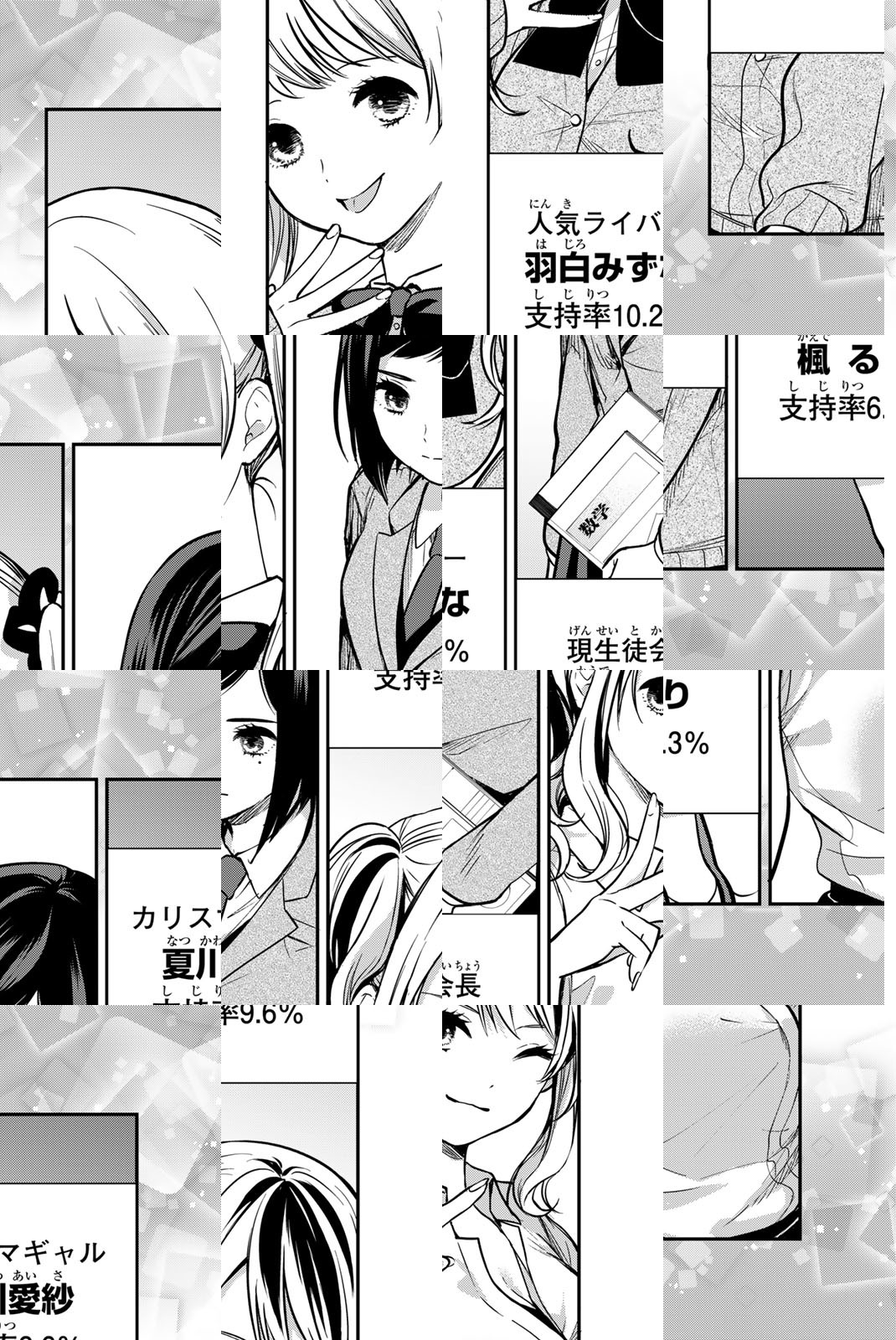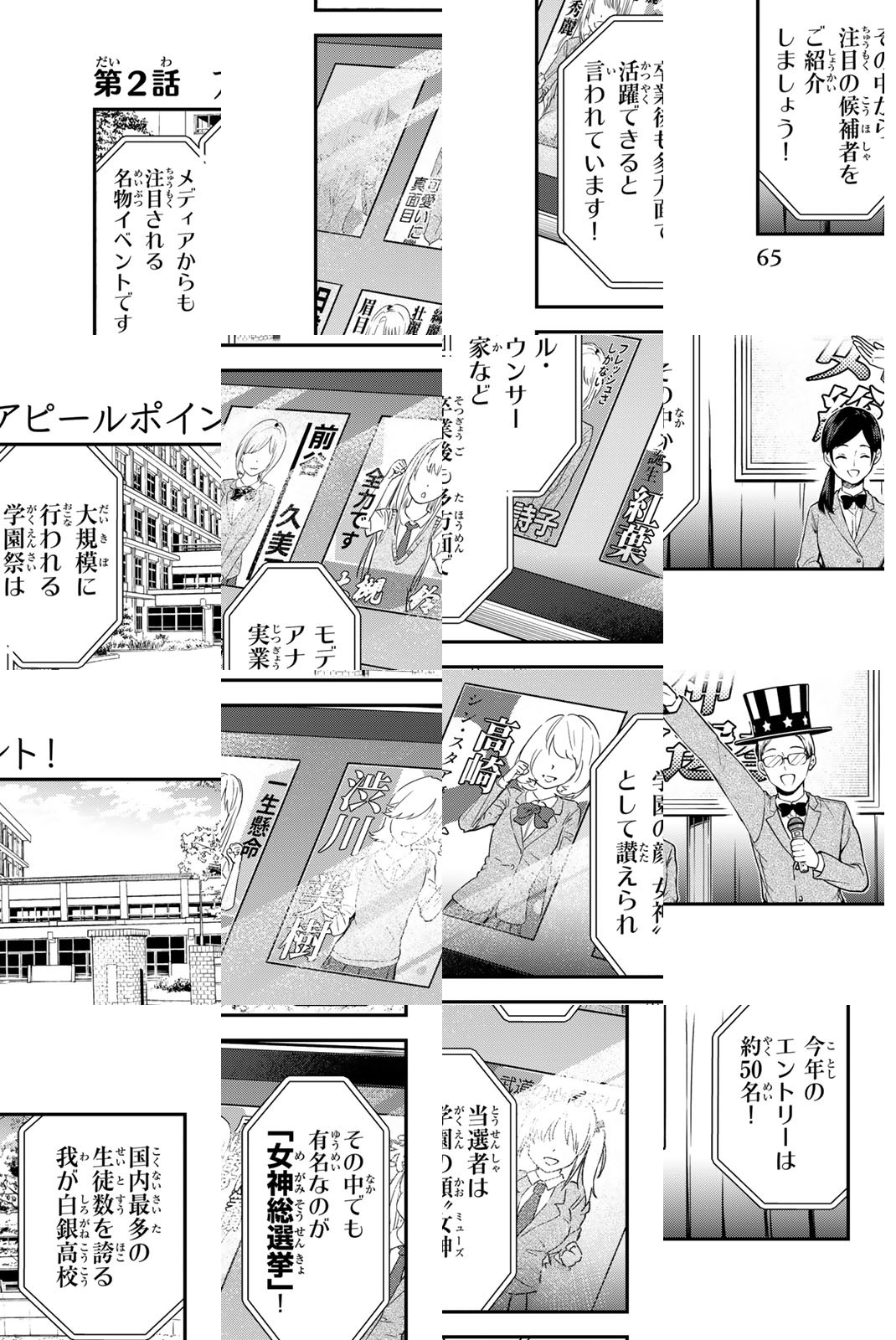 この学校では年に一度、学園のNo.1ヒロイン「女神(ミューズ)」を決める、通称「女神総選挙」がある。主人公・盾(じゅん)が想いを寄せる幼馴染・藍羽つぐみは前年の優勝者。そのつぐみに振られた腹いせに何かしてやろうと企む盾のところに、陰キャ同級生・高雛うずらが「自分も女神総選挙に出たい」と言ってきて……? No.1ヒロインの座をかけ、恋の総選挙開幕!