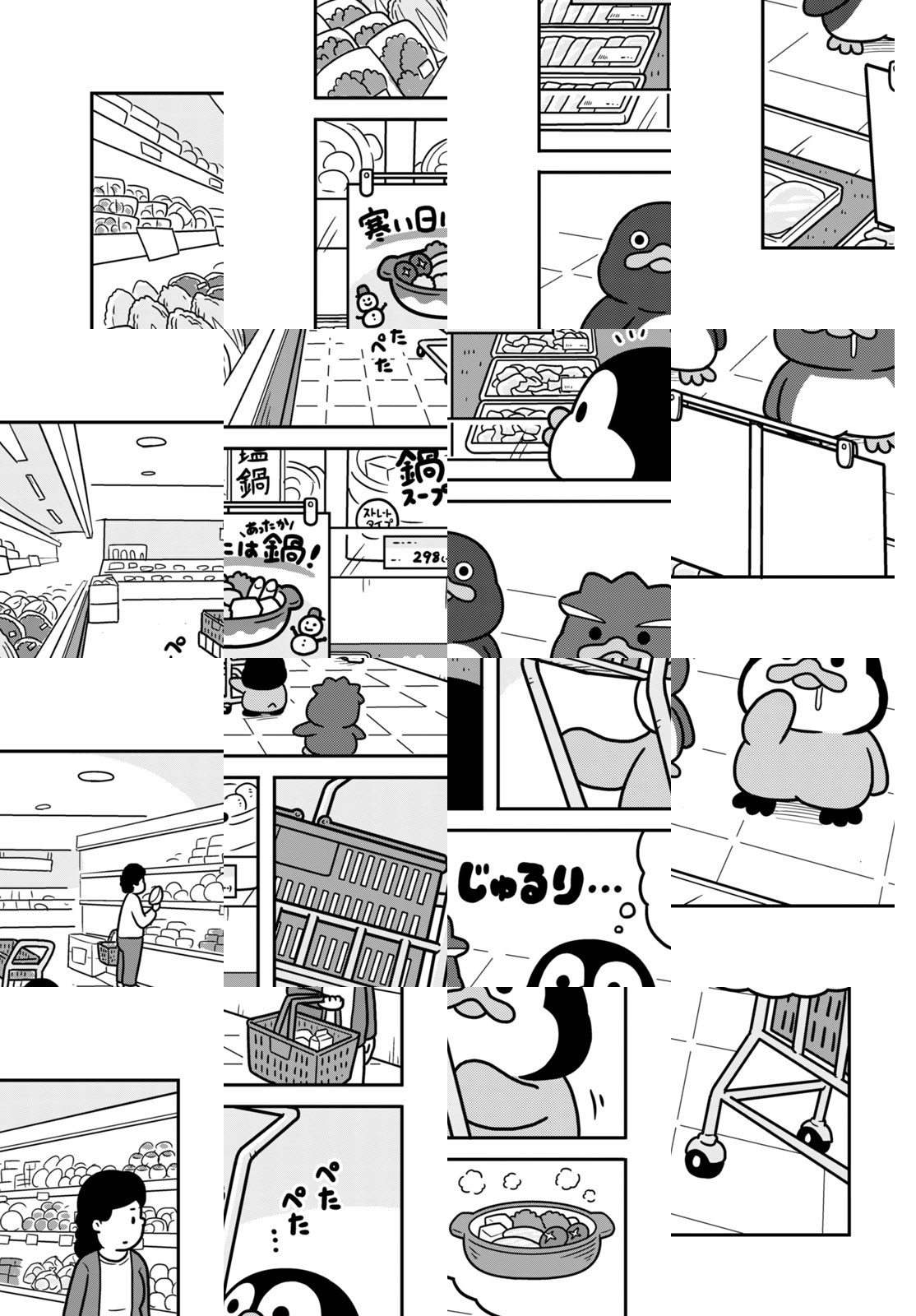 【泣き虫で甘えん坊なコウテイペンギン】【ドジでおバカなアデリーペンギン】【やんちゃでわんぱくなイワトビペンギン】にんげん社会に紛れ込んだ、3匹のペンギンたち。三輪車でフードデリバリーのアルバイトをしたり、カラオケでマイクを互いに譲り合ったり…。とことんマイペースに生きるペンギンたちと、彼らに振り回されるにんげんの、ゆるかわ漫画!!