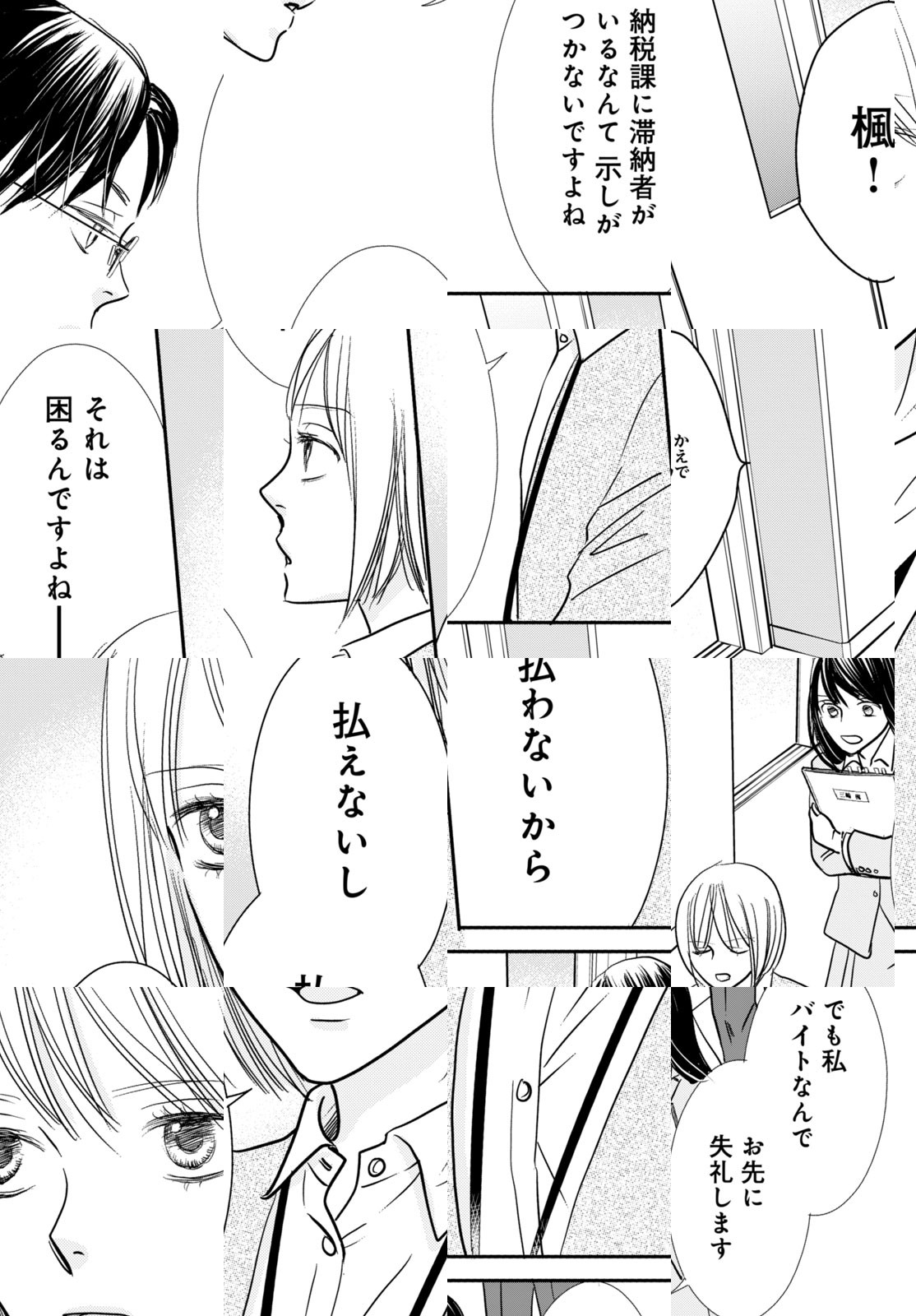 幸野市役所納税課に勤める百目鬼華子は、クールな見かけとは裏腹に、お客の前で机にペンを突き刺すなど、予測不能な行動も多いマイペースな新人職員。脱力系チャラ男公務員・饗庭蒼一郎とペアを組みワケあり滞納者と毎日本音で向かいあう!
