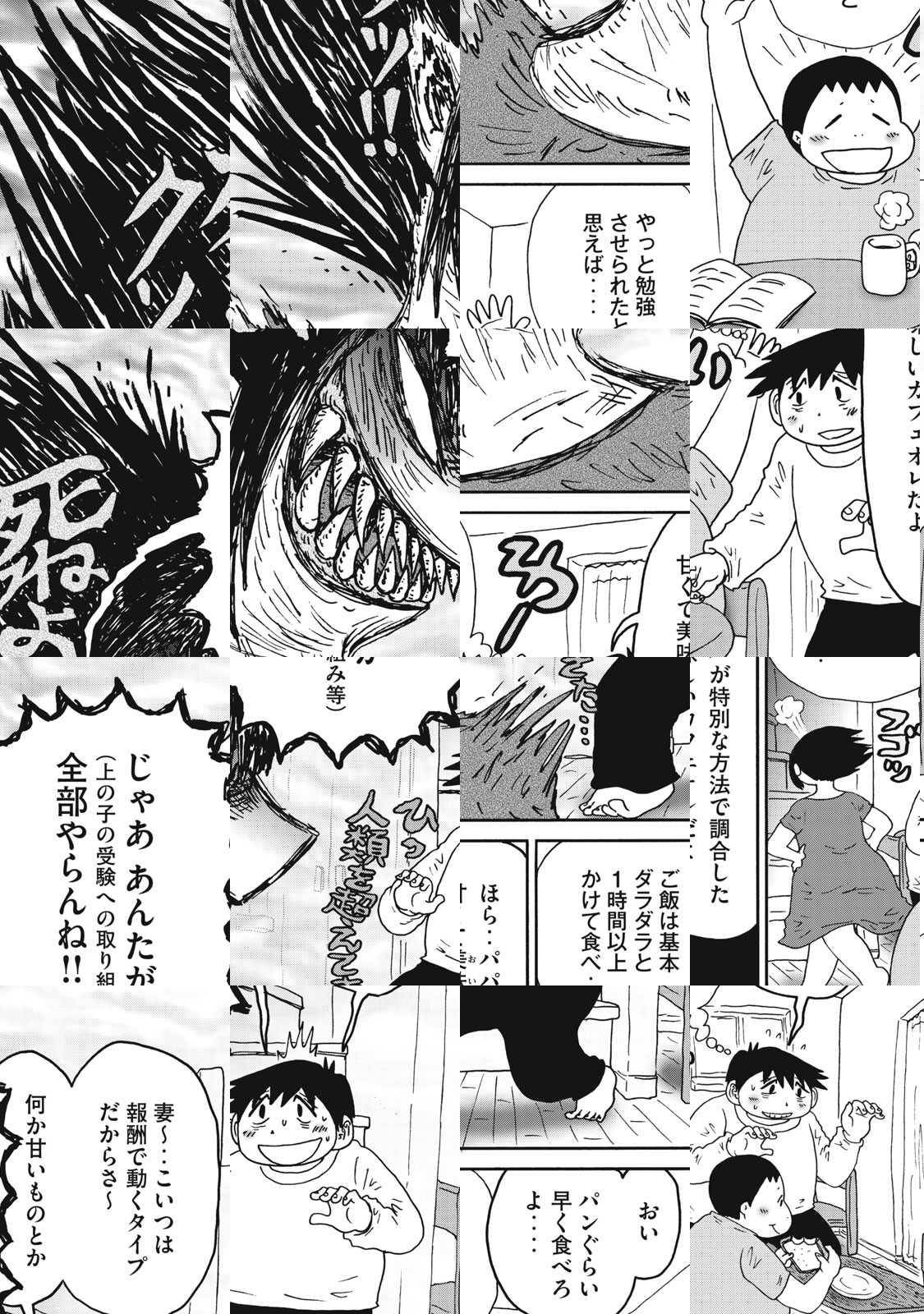 僕の漫画で何とか食えるようになったので仕事を辞めて家でゴロゴロしていた妻が、ある日ムックリと起き上がり「赤ちゃんほしい」と言いました。で‥‥話は飛んで産まれたところから始まる、診断が多い育児生活。この作品は実生活を基にしたフィクションです。